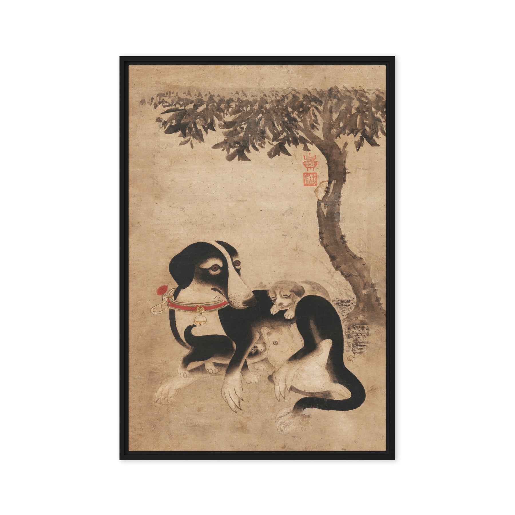 Hundemutter-mit-Welpen-framed-canvas-_in_-black-24x36