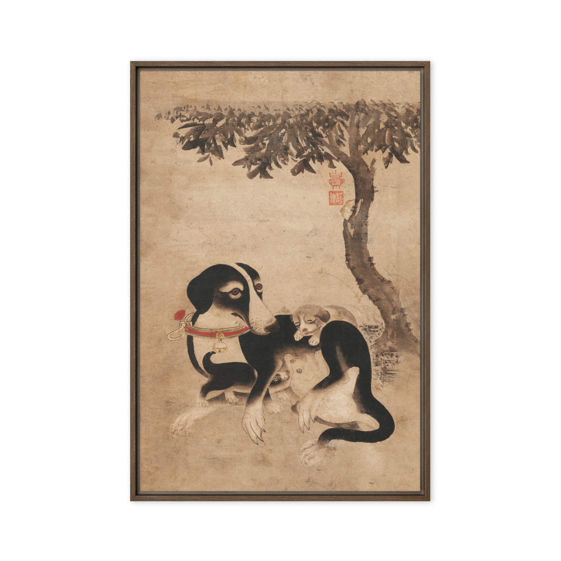 „Hundemutter mit Welpen“ ist ein bekanntes Tierbild des koreanischen Malers Yi Am (이암, 1499–?) aus der Joseon-Dynastie. Yi Am war ein Nachfahre der königlichen Familie und wurde besonders für seine realistischen Tierdarstellungen geschätzt. Historischen Aufzeichnungen zufolge wurde er sogar als möglicher Maler für das königliche Porträt von König Jungjong empfohlen – ein Zeichen für sein hohes Ansehen.