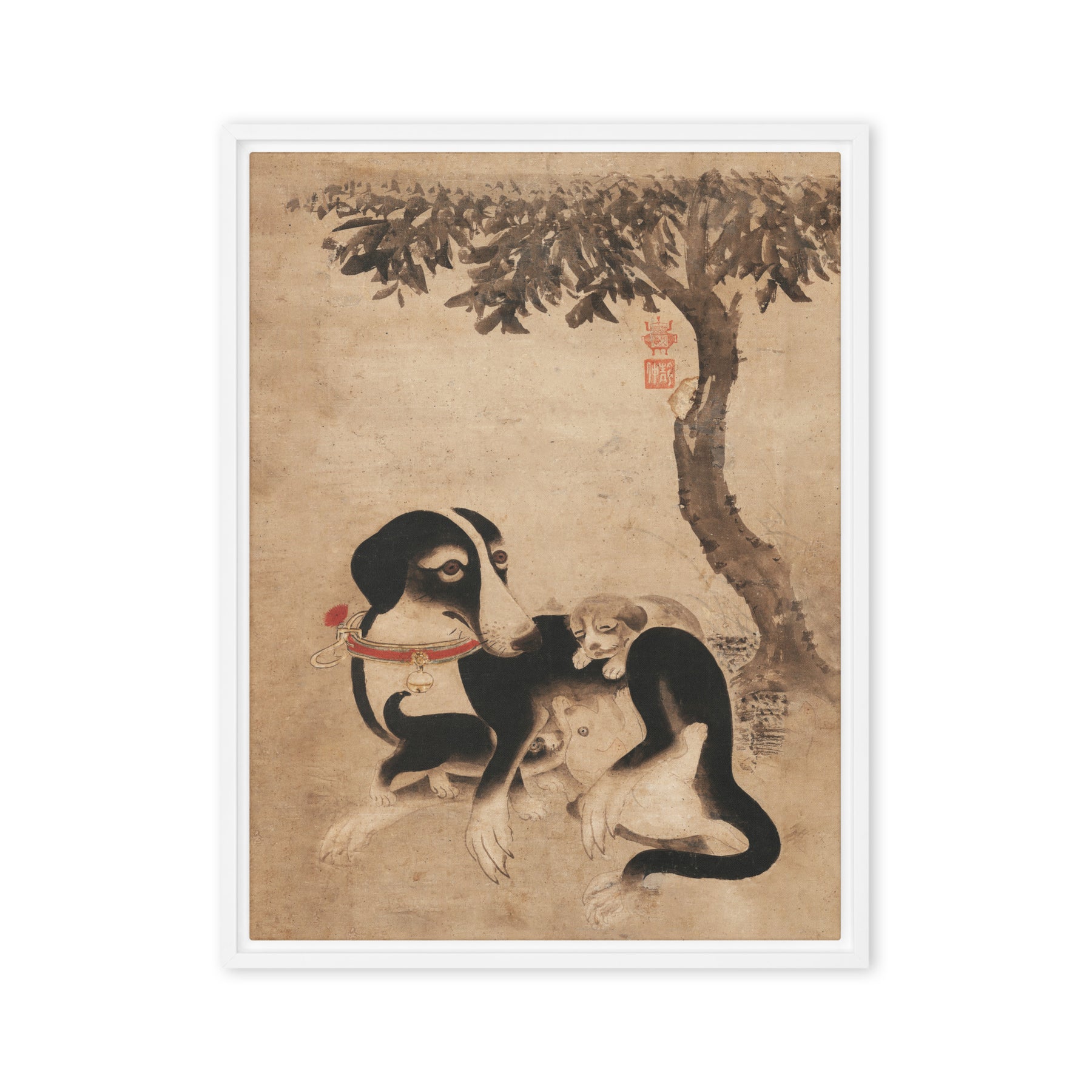 Hundemutter-mit-Welpen-framed-canvas-_in_-white-24x36