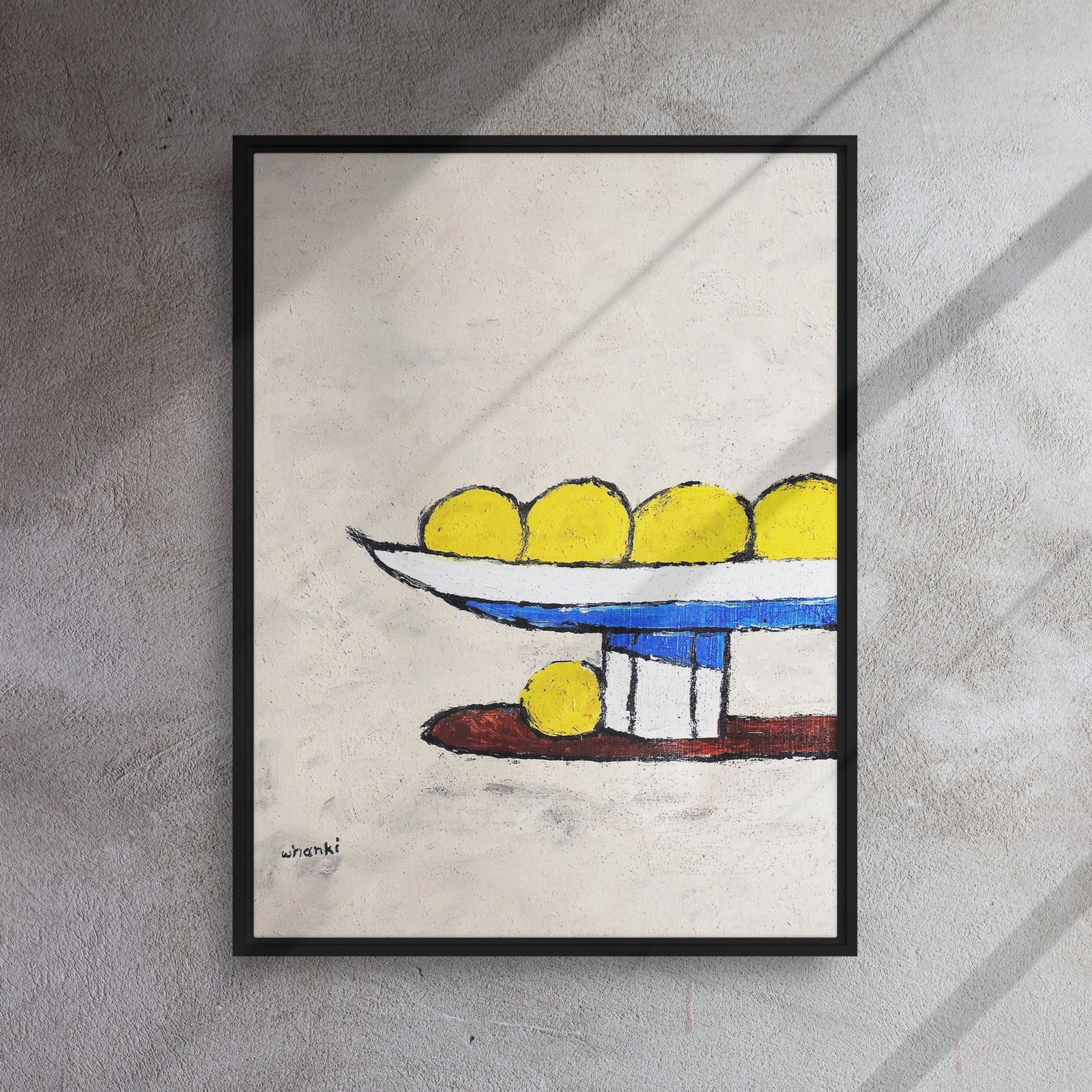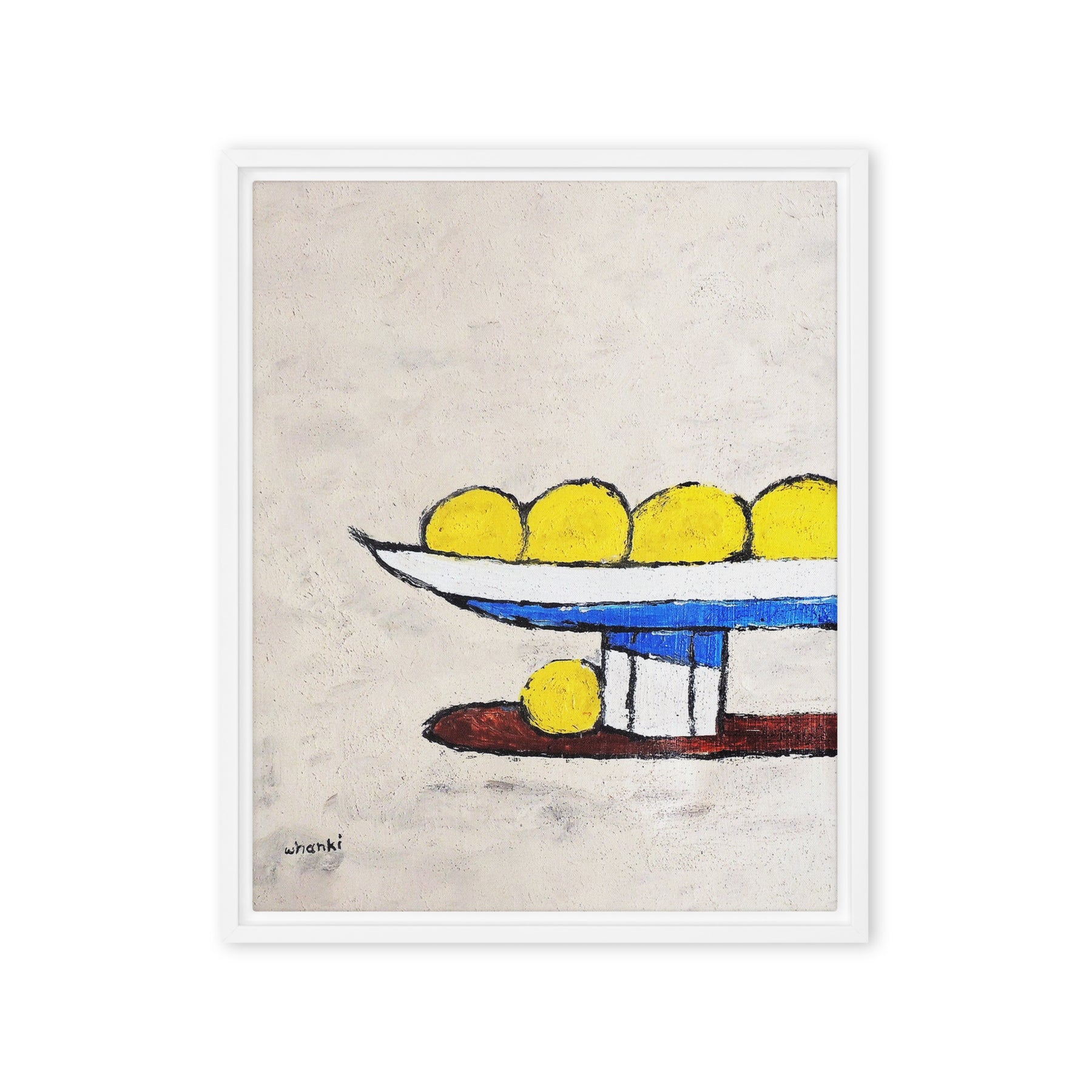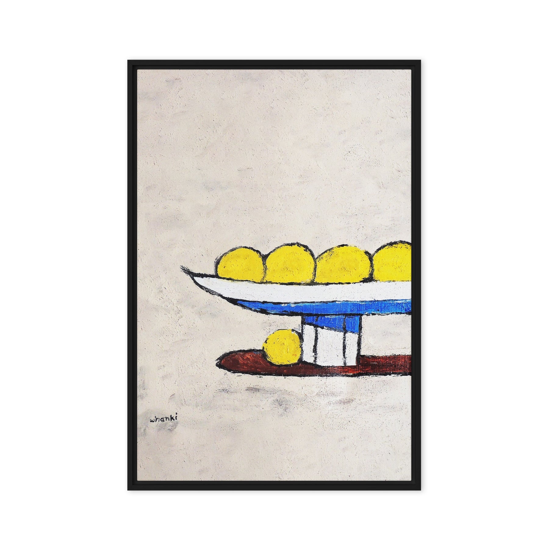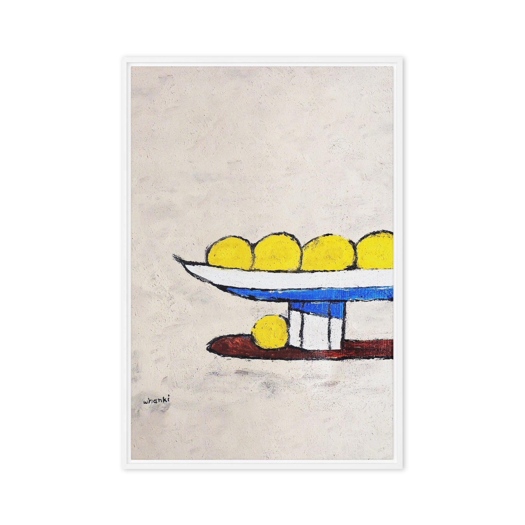 Gerahmte Leinwand - Zitronen auf Tablett von Whanki Kim