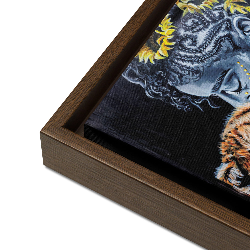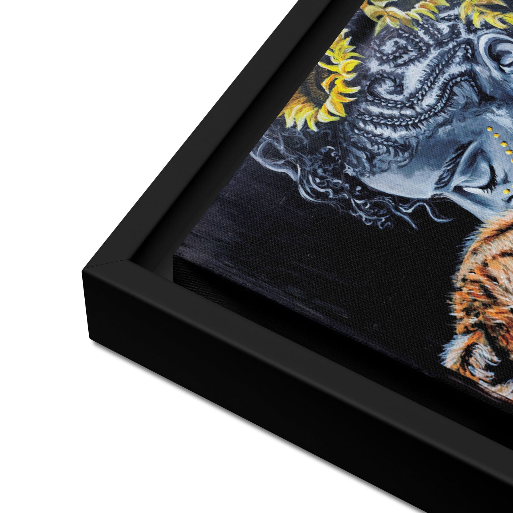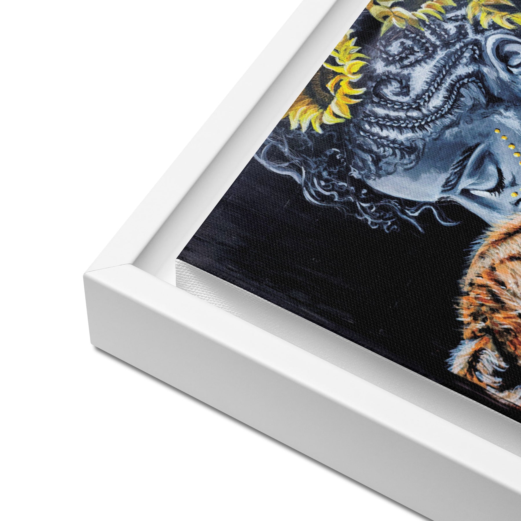 Die gerahmte Leinwand aus Kiefernholz hat Gummipolster an den Ecken, eine vormontierte Wandhalterung und einen schwebenden Rahmen für mühelose Eleganz.