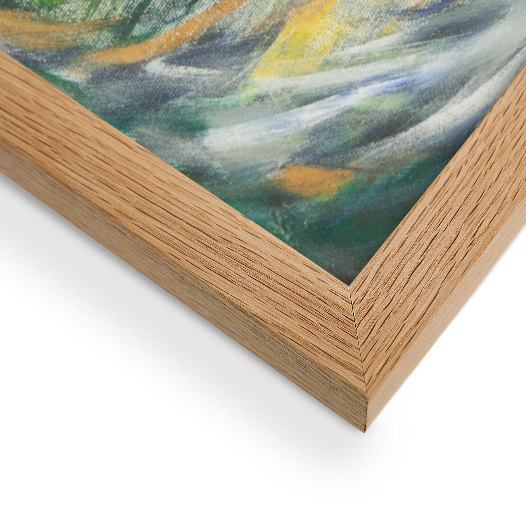 La toile en pin encadrée est dotée de coussinets en caoutchouc aux coins, d'un support mural pré-attaché et d'un cadre flottant pour une élégance sans effort.