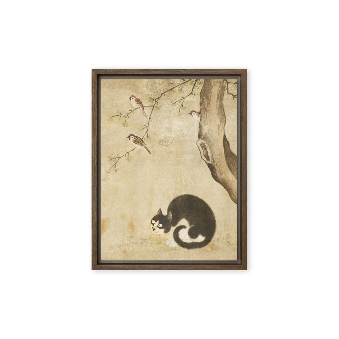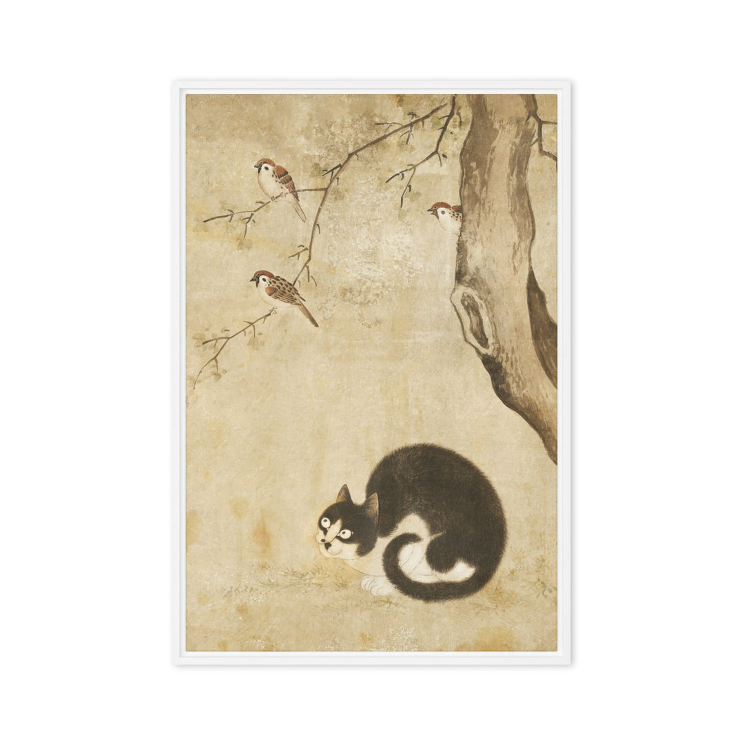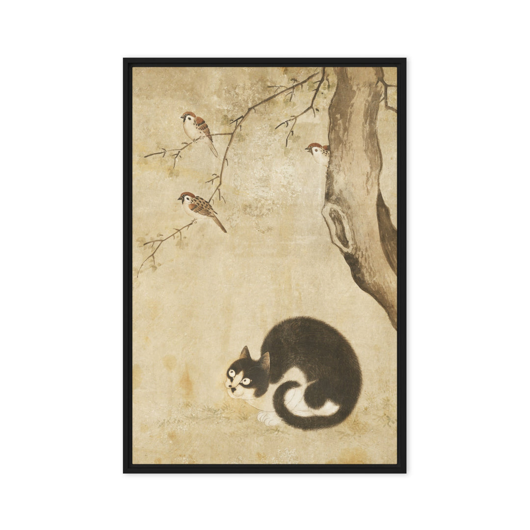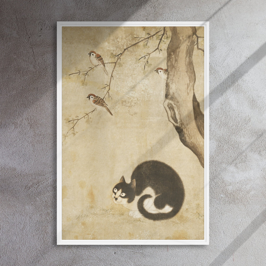 Toile encadrée - Chat et moineaux, Byeon Sang-byeok