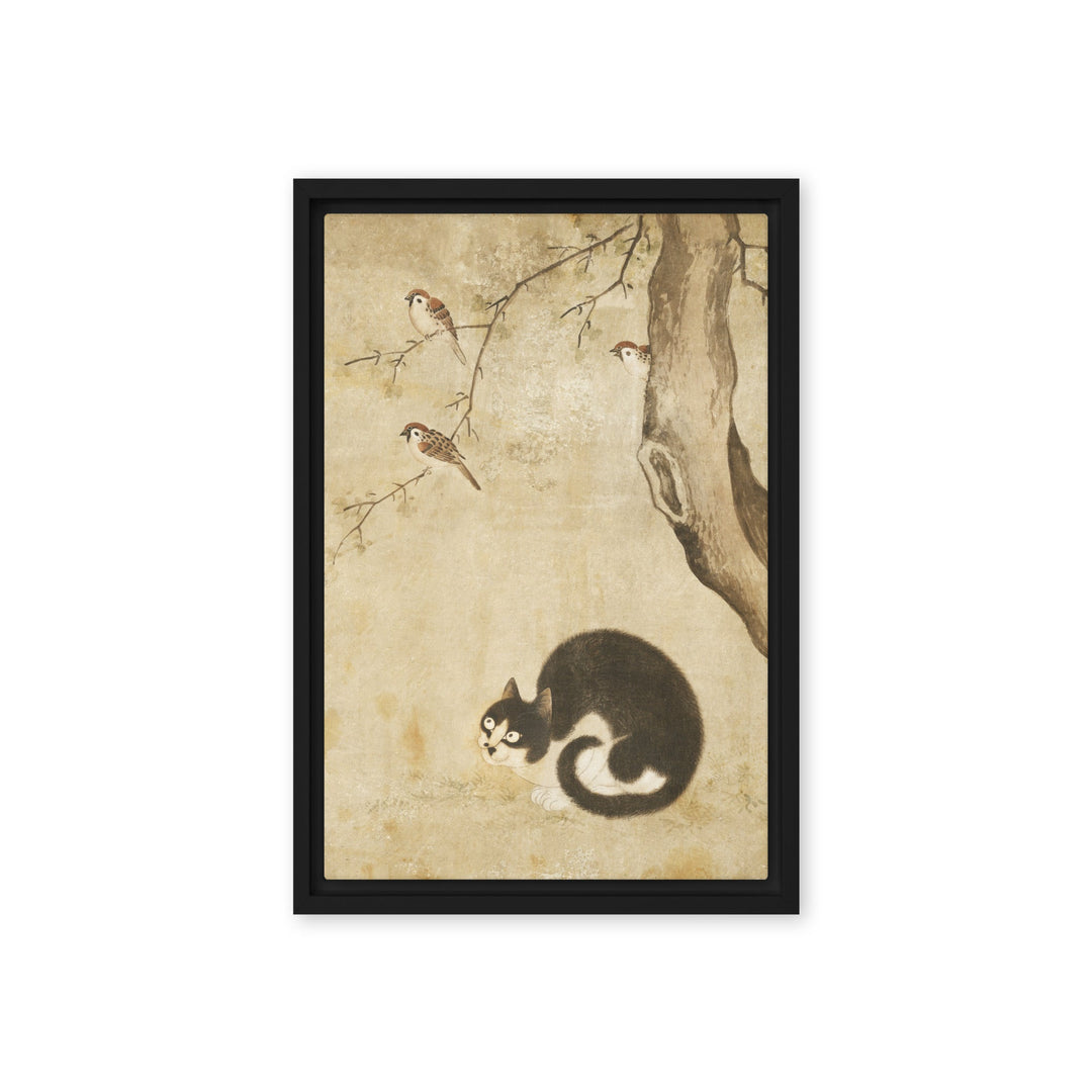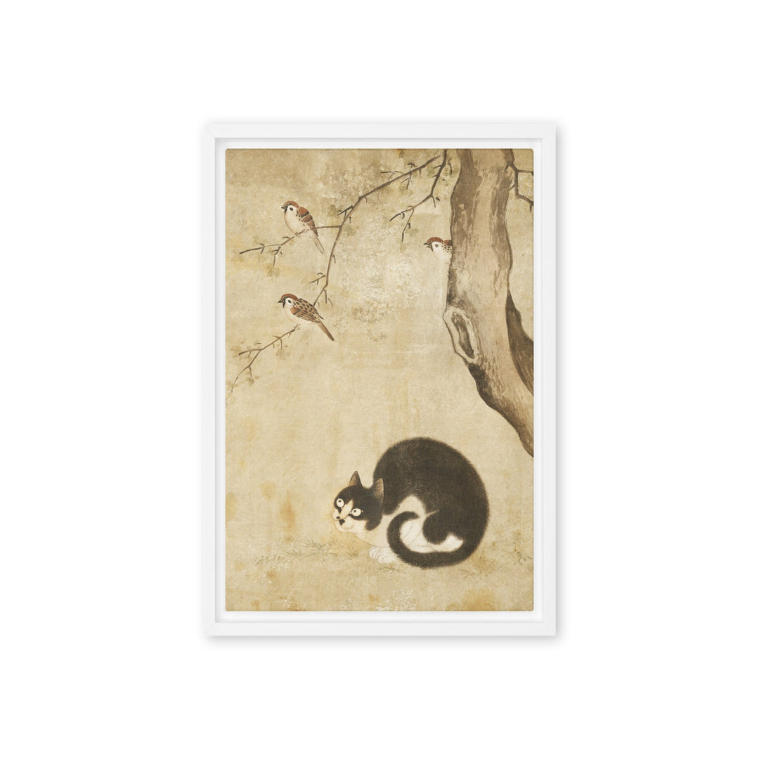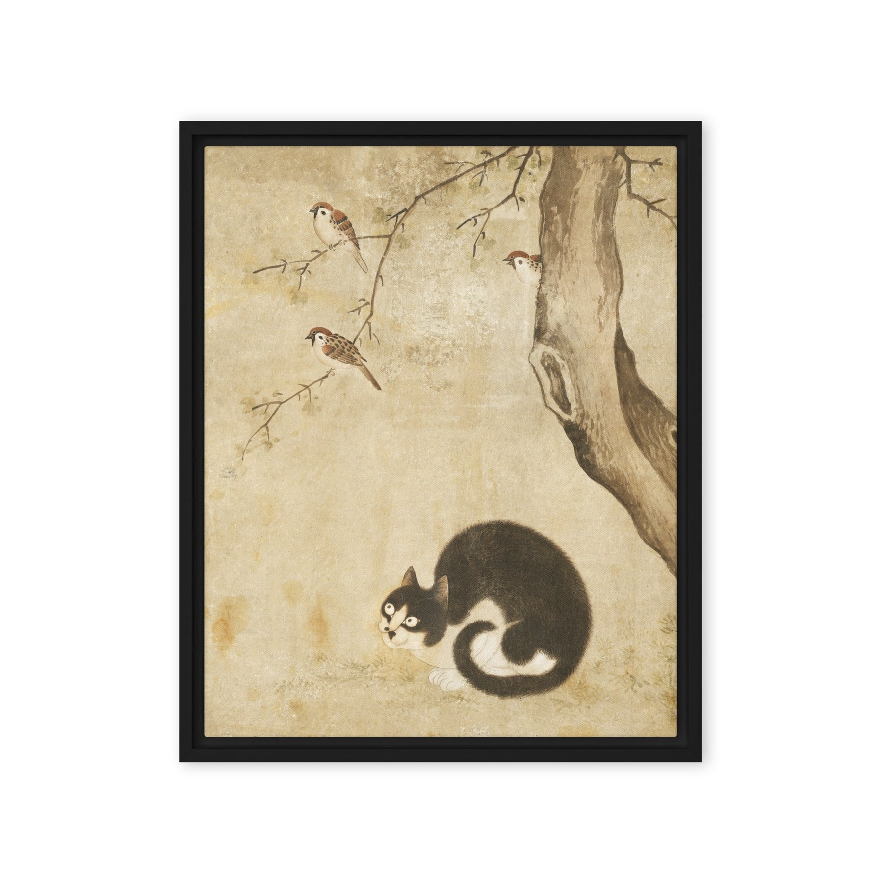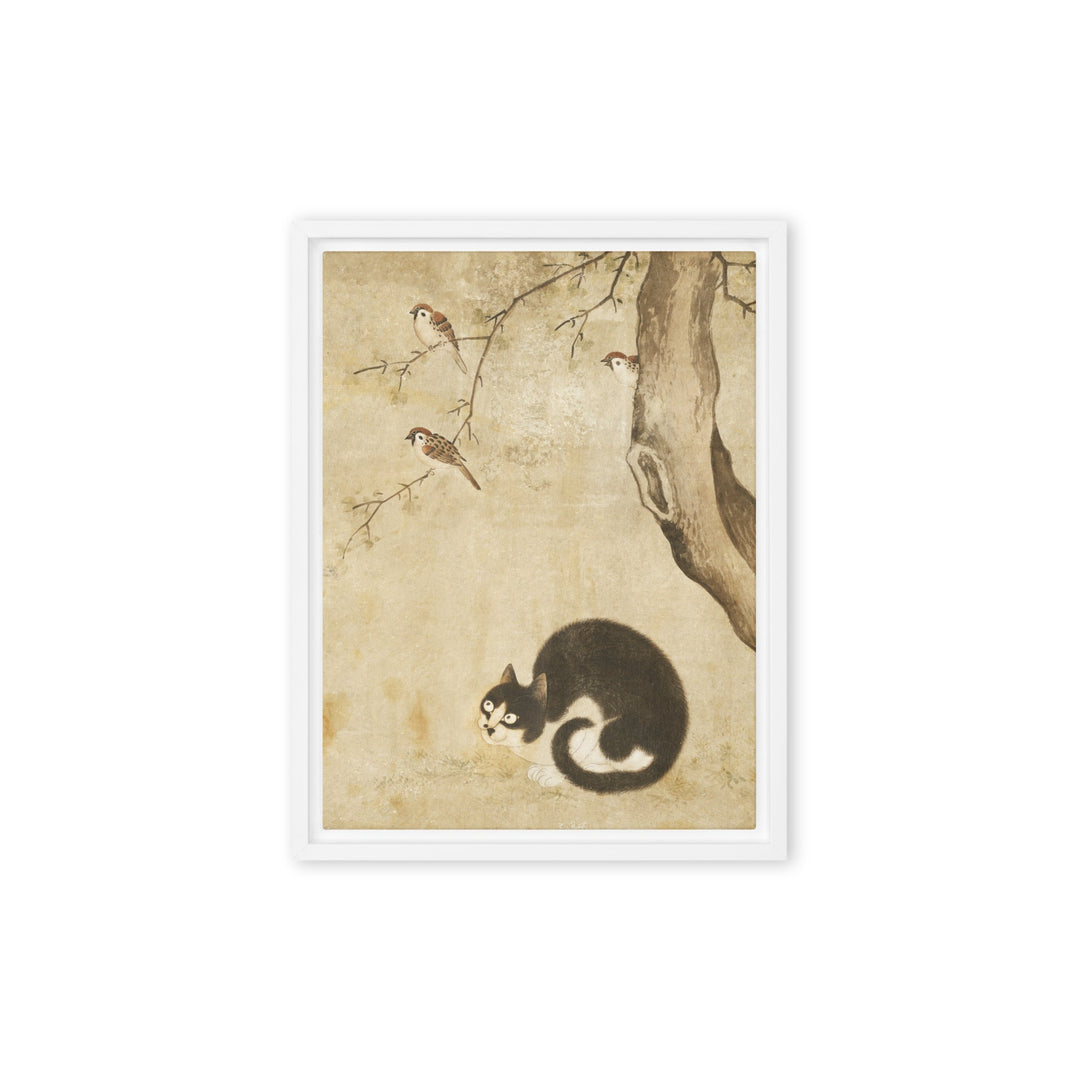 Toile encadrée - Chat et moineaux, Byeon Sang-byeok