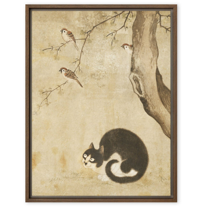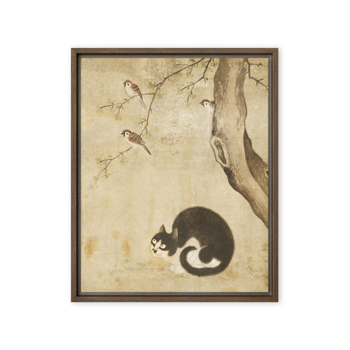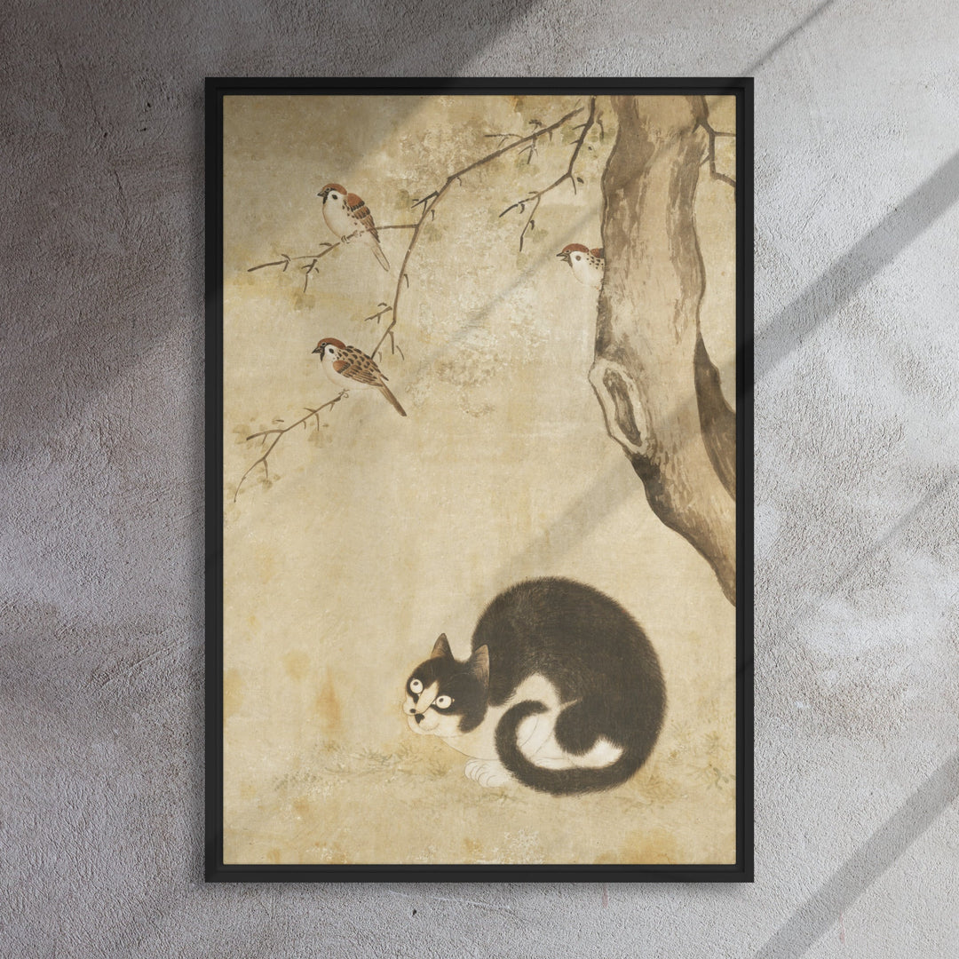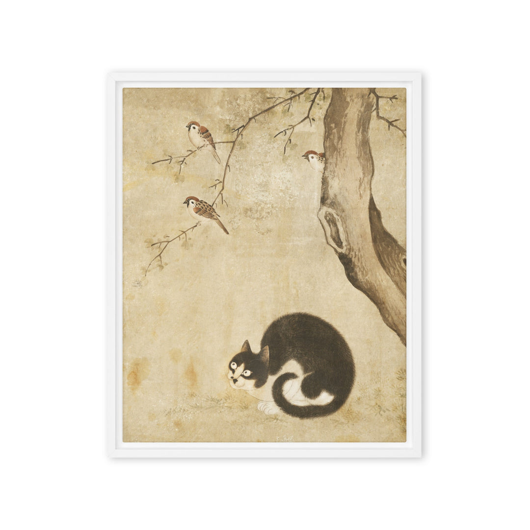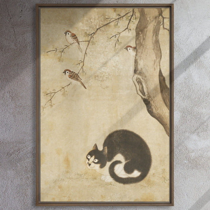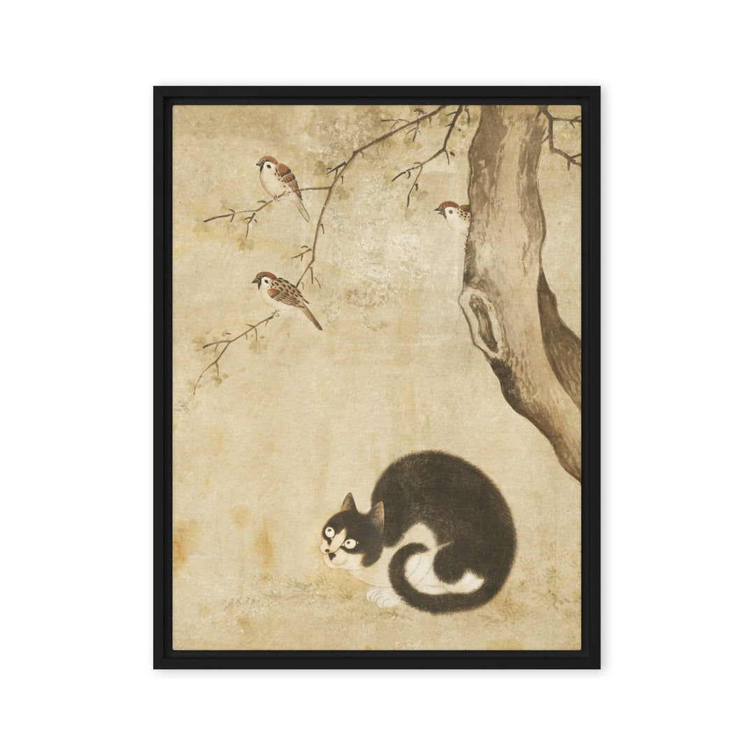 Toile encadrée - Chat et moineaux, Byeon Sang-byeok