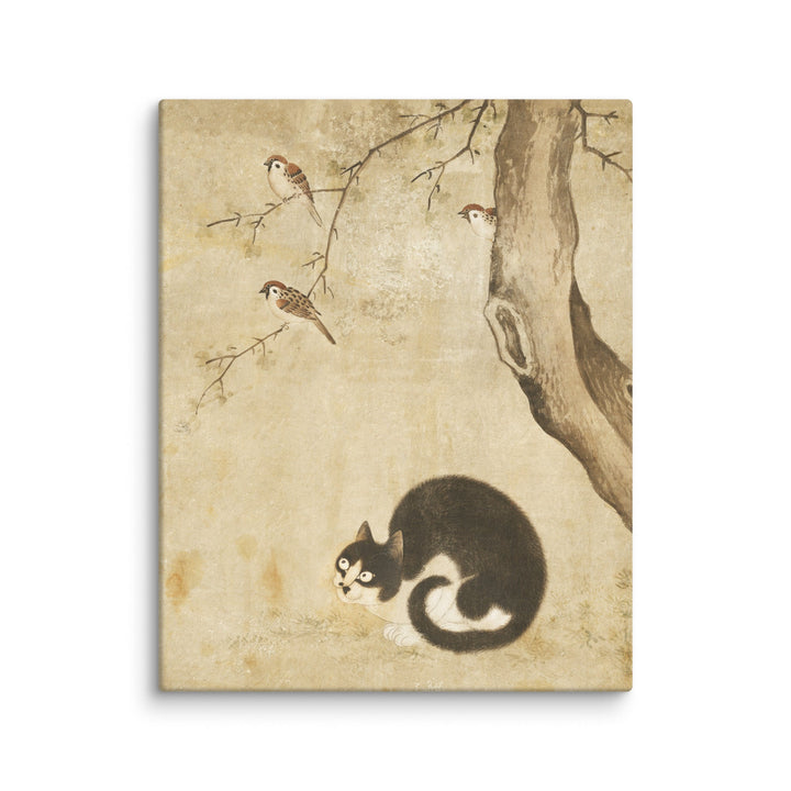 Leinwand - Katze und Spatzen, Byeon Sang-byeok ohne Rahmen / 41x51 cm (16″×20″) artlia