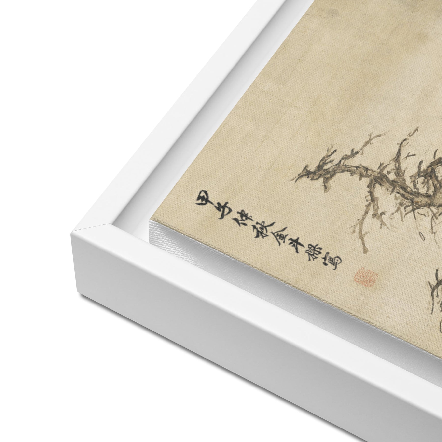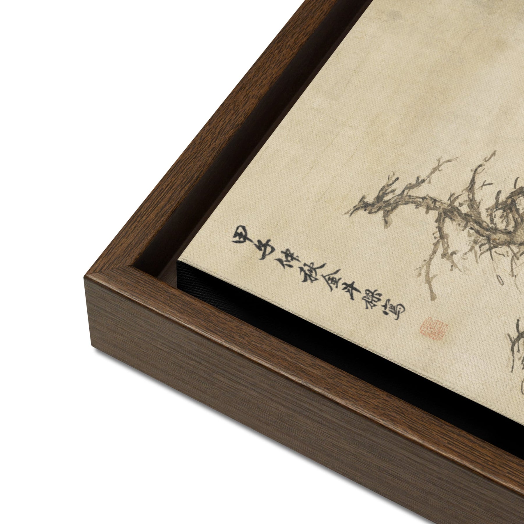 - Les toiles encadrées avec cadres marron et noir ont un intérieur noir autour de la toile, et les toiles avec cadres blancs ont un intérieur blanc autour de la toile.