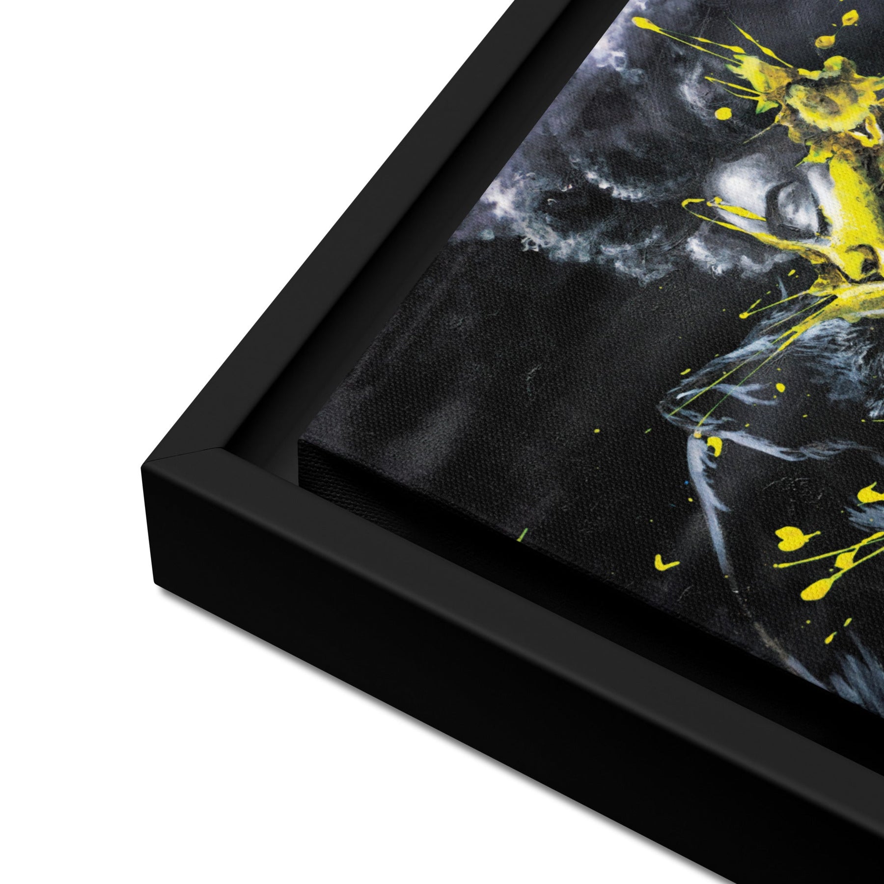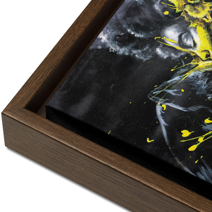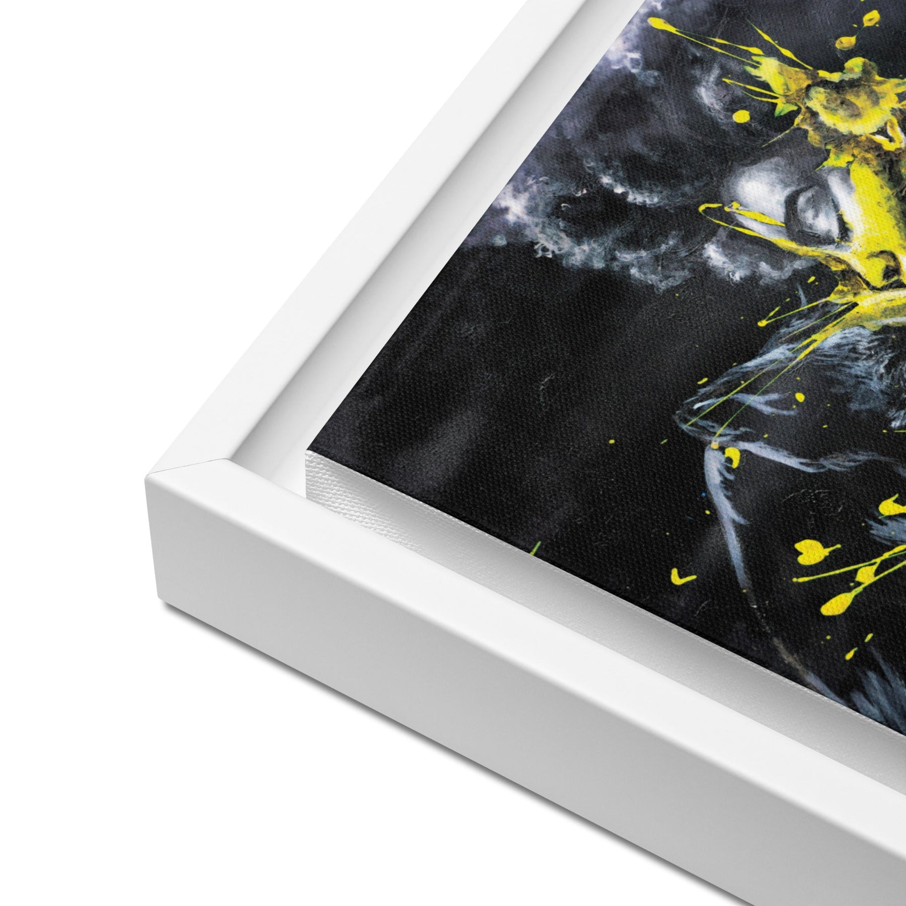 La toile en pin encadrée est dotée de coussinets en caoutchouc aux coins, d'un support mural pré-attaché et d'un cadre flottant pour une élégance sans effort.