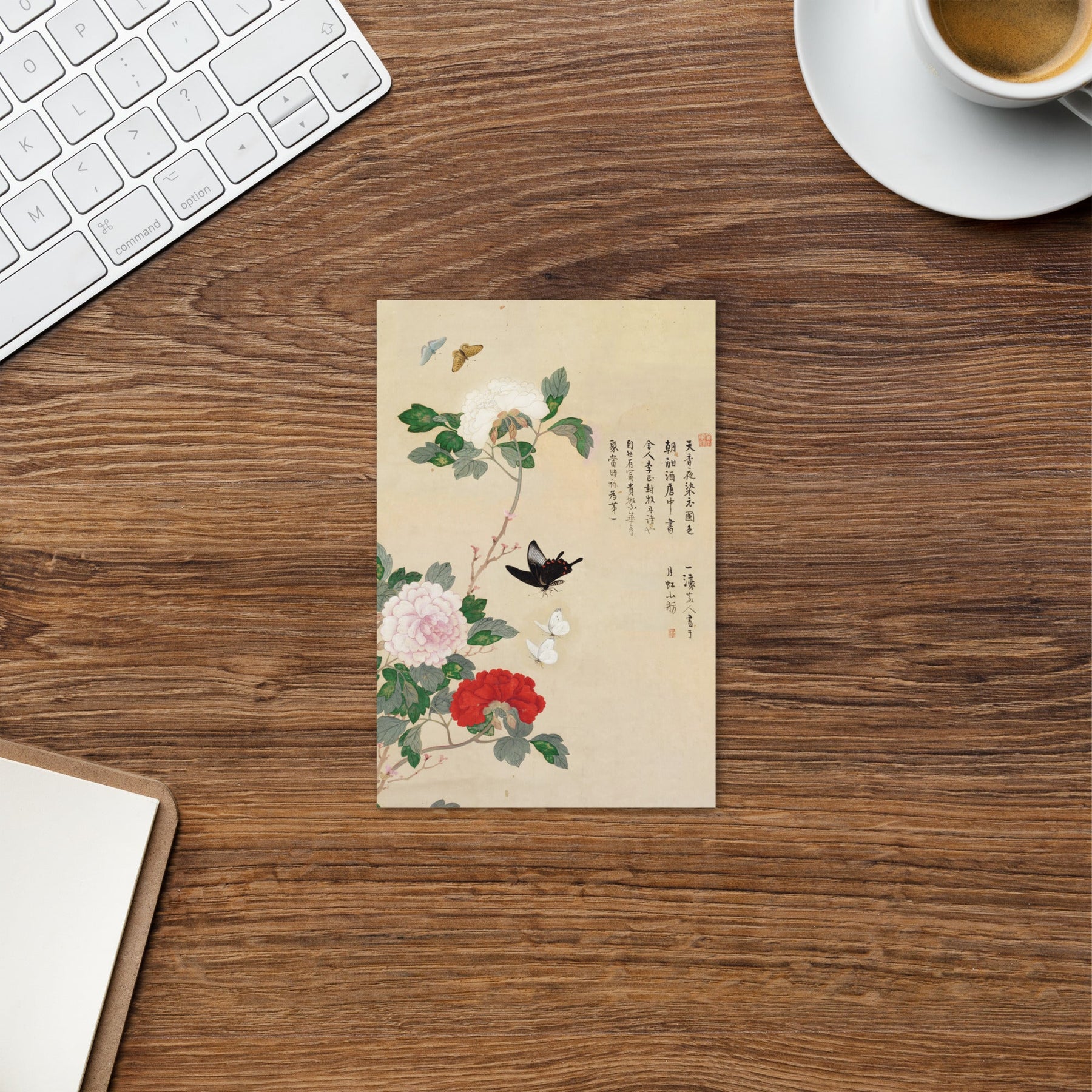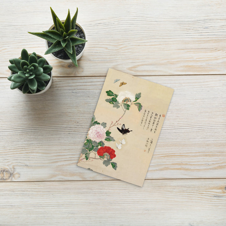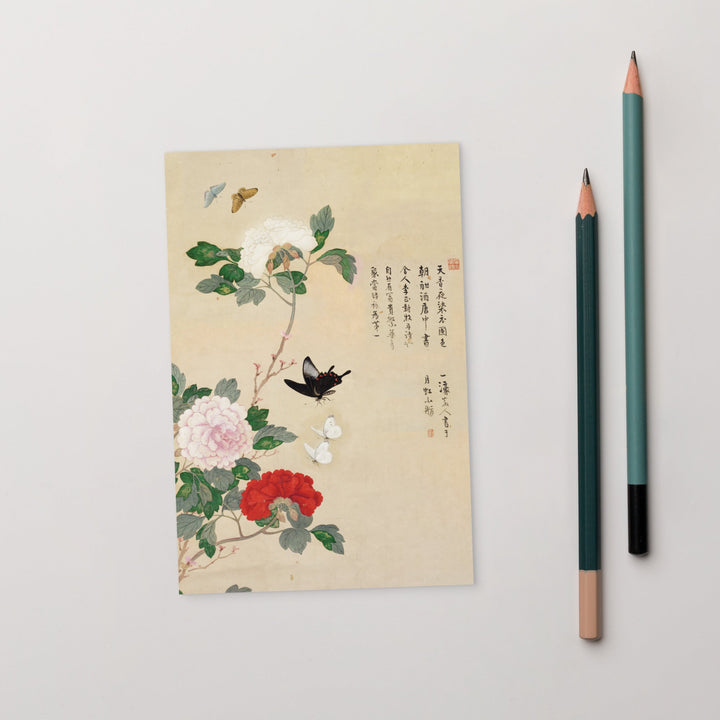 Cette carte postale - Fleurs et papillons est fabriquée en papier mat épais et de haute qualité, ce qui en fait un cadeau optimal ou un moyen d'envoyer un message affectueux à un ami.