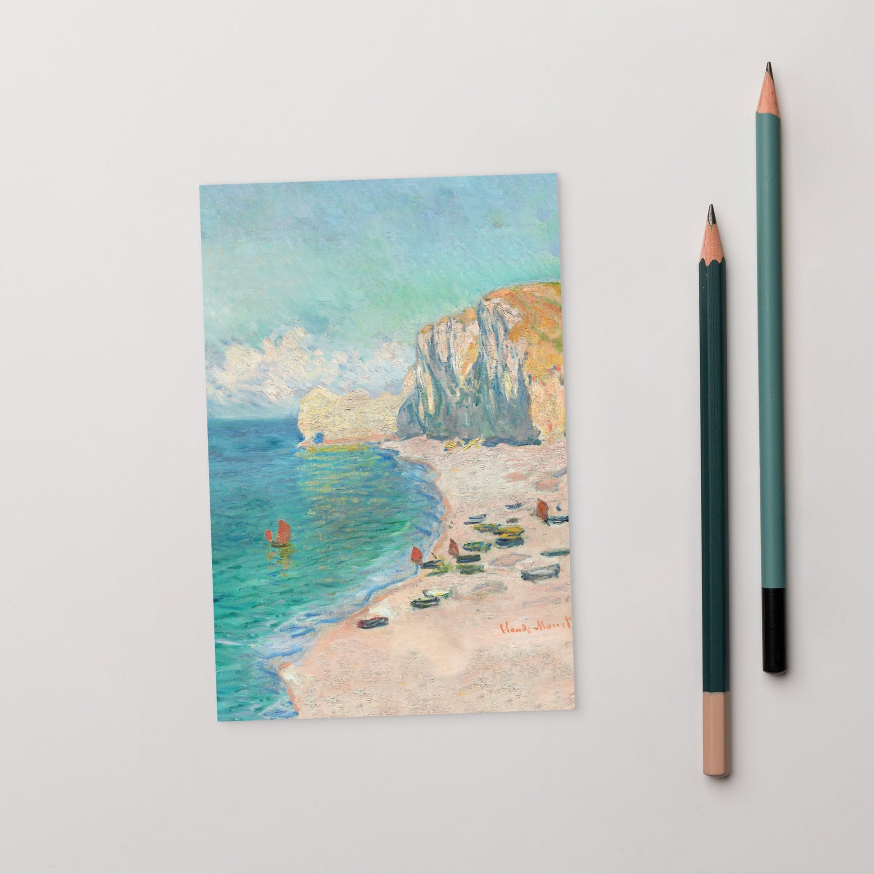 Cette carte postale - Claude Monet, Étretat : La Plage et la Falaise d'Amont est fabriquée à partir d'un papier mat épais et de haute qualité, ce qui en fait un cadeau optimal ou un moyen parfait pour envoyer un message affectueux à un ami.