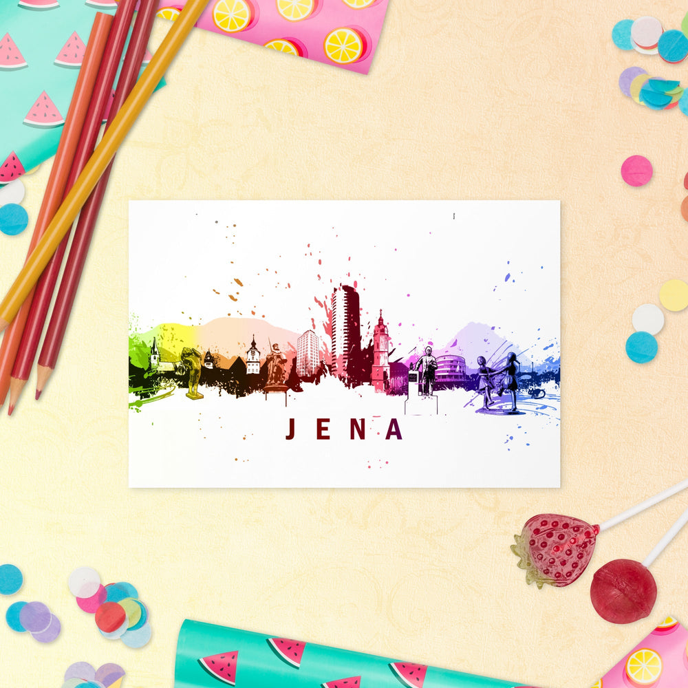 Cette carte postale - Skyline Jena est fabriquée à partir d'un papier mat épais et de haute qualité, ce qui en fait un cadeau optimal ou un moyen idéal pour envoyer un message affectueux à un ami.