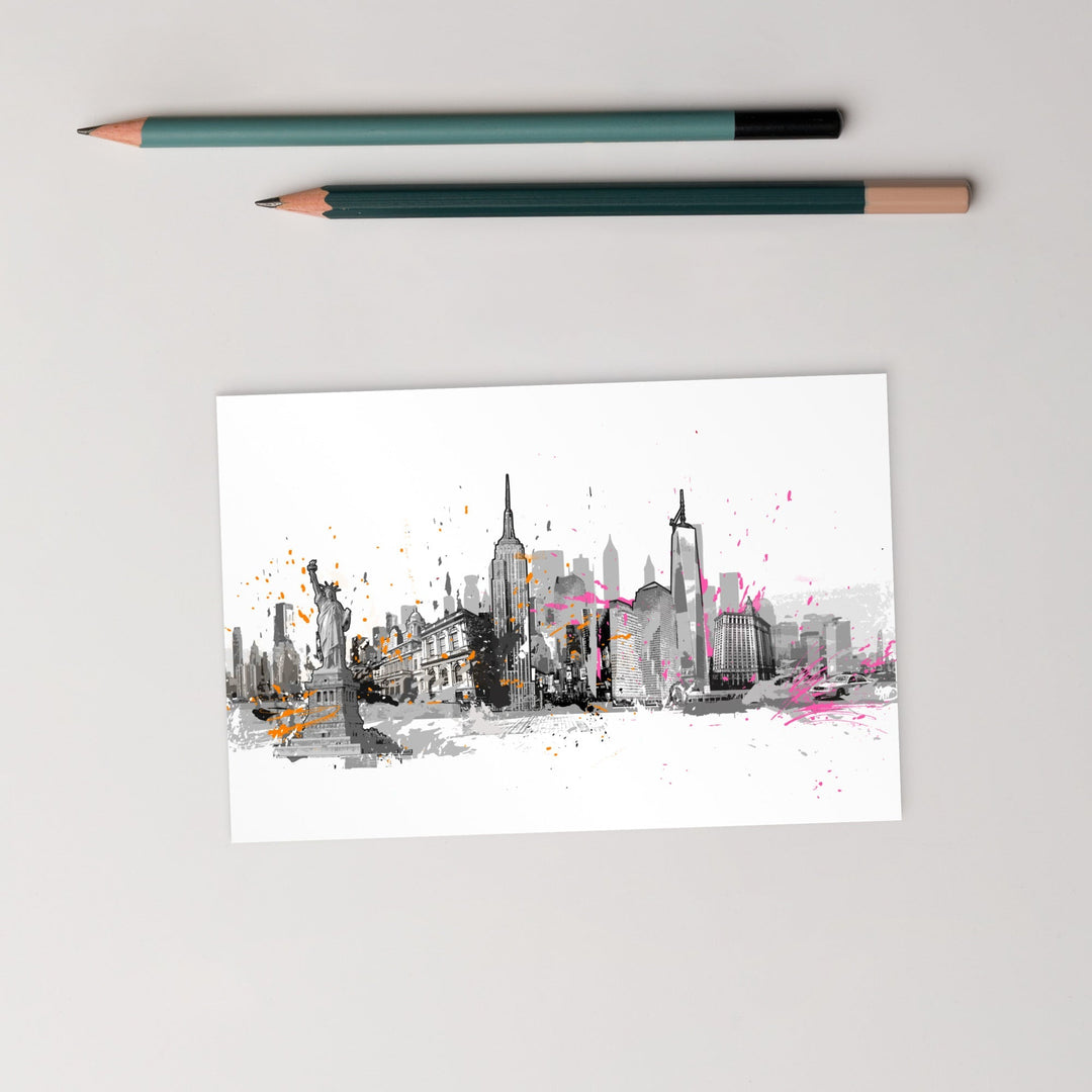 Cette carte postale - Skyline New York est fabriquée à partir de papier mat épais et de haute qualité, ce qui en fait un cadeau optimal ou un moyen idéal pour envoyer un message affectueux à un ami.