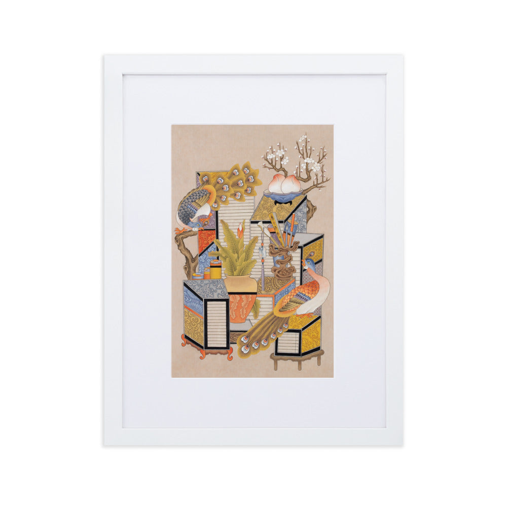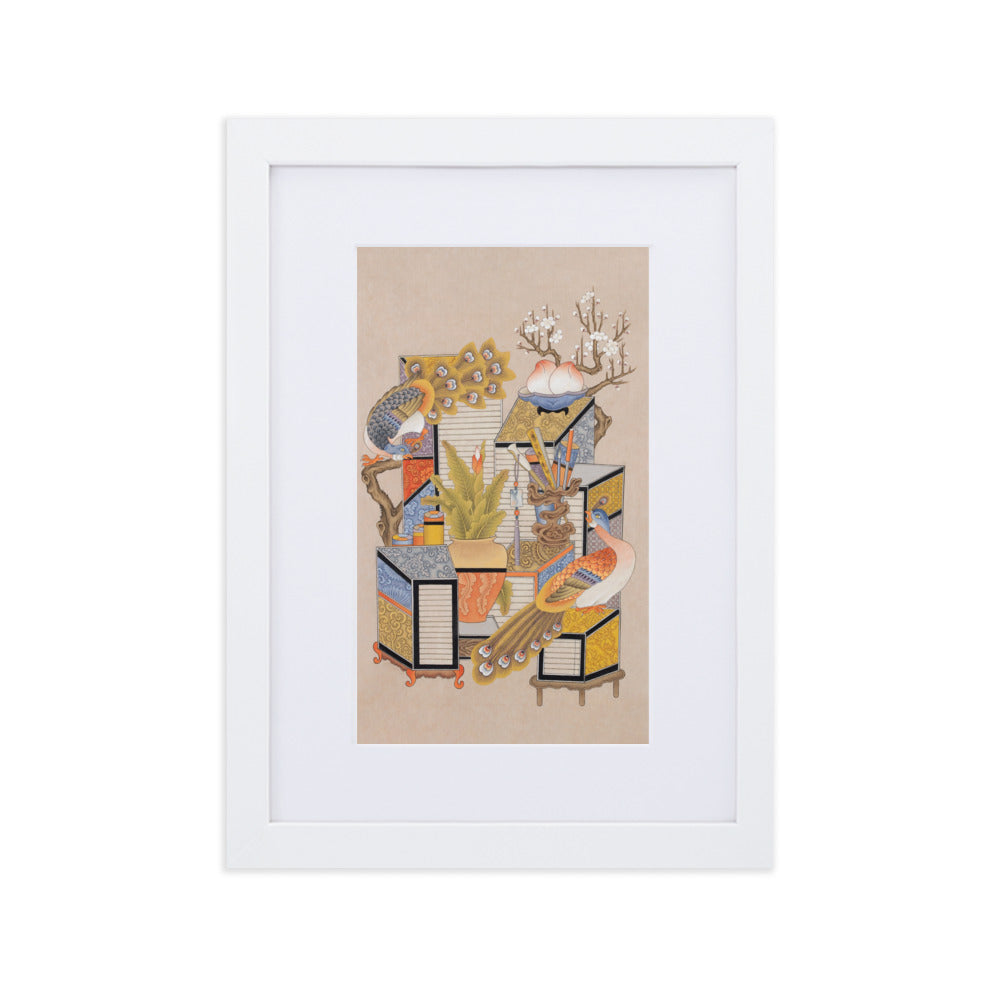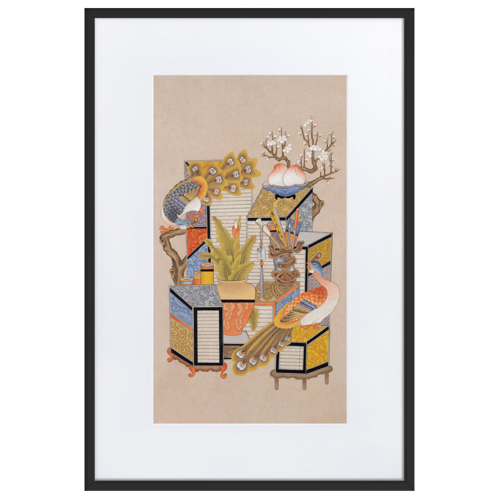 Poster Passepartout - Sehnsucht nach Wissen mit Pfau