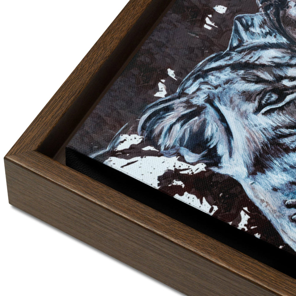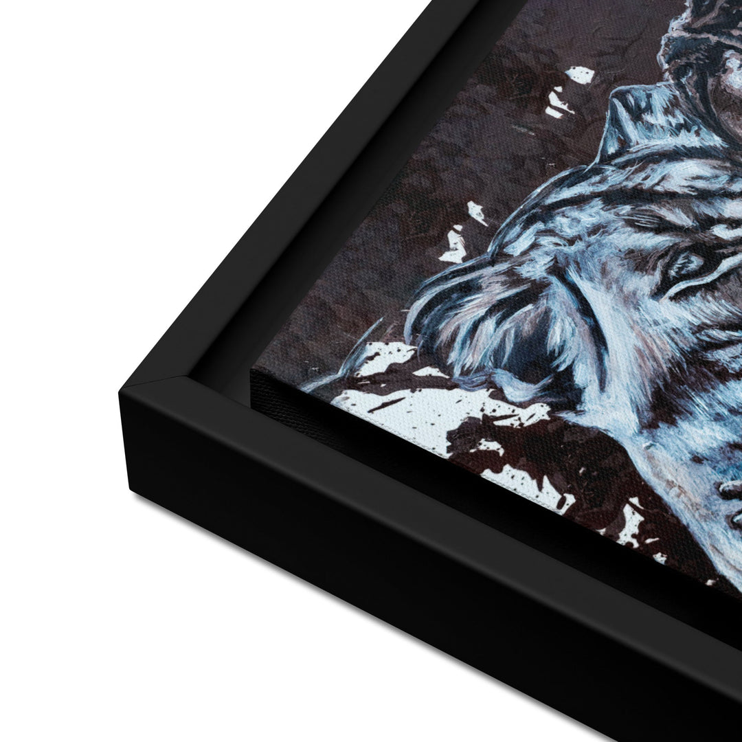 La tela incorniciata in legno di pino ha dei cuscinetti in gomma agli angoli, un supporto a parete preassemblato e una cornice sospesa per un'eleganza senza sforzo.