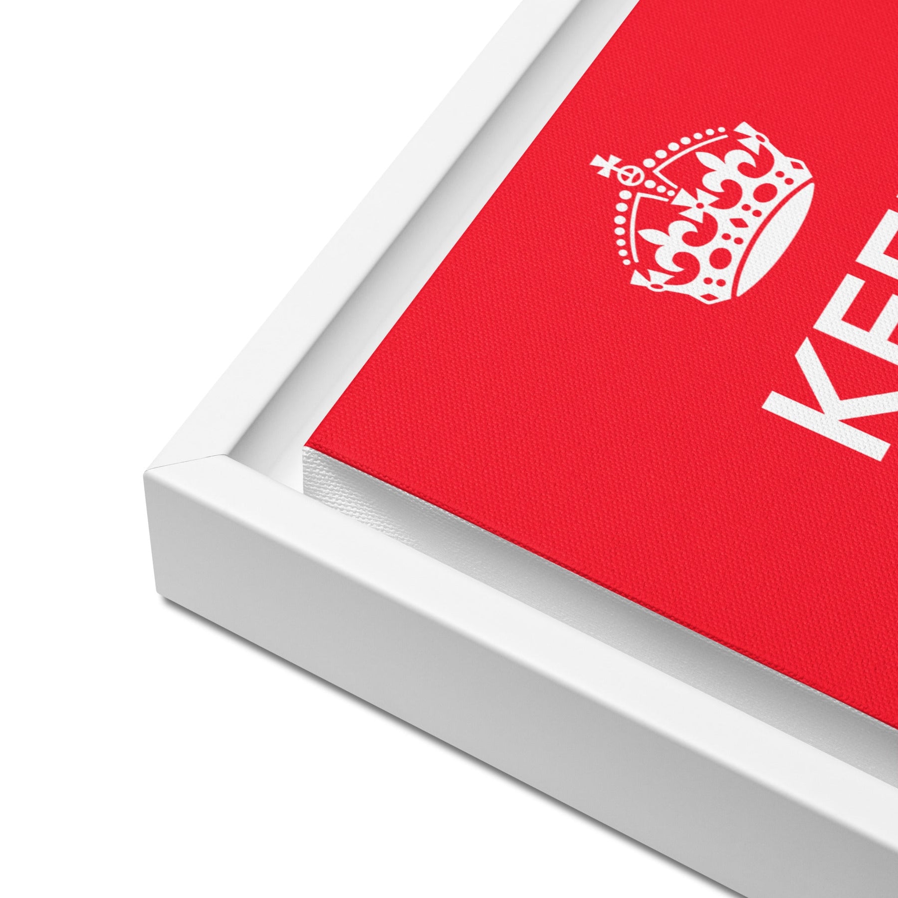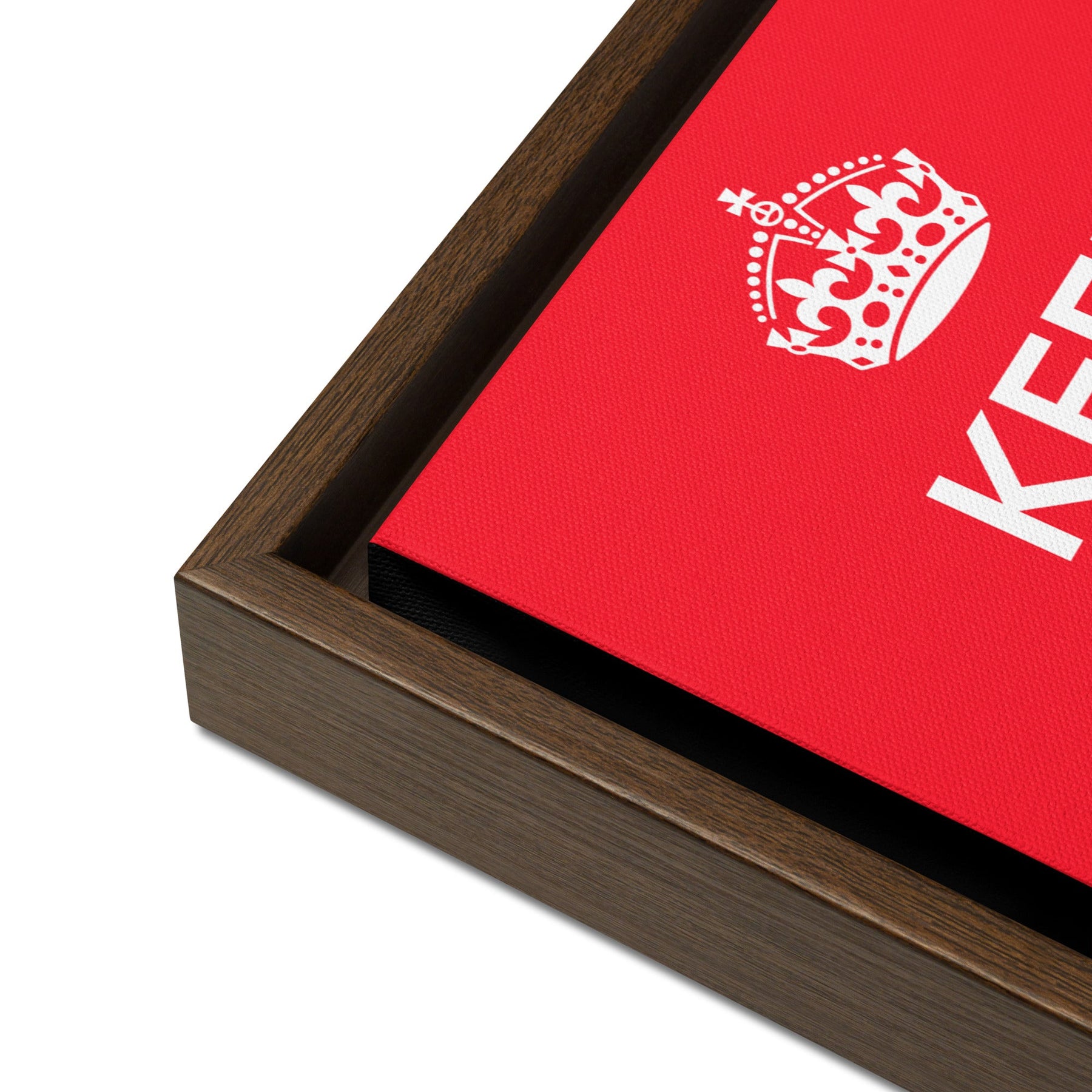 Ravviva le tue pareti vuote con questa straordinaria tela incorniciata! Questa tela incorniciata di alta qualità - Keep Calm and Carry on in legno di pino viene fornita con gommini agli angoli posteriori e un supporto a muro che consente di appendere l'opera d'arte senza problemi. Inoltre, la cornice conferisce alla tela un effetto sospeso davvero cool!