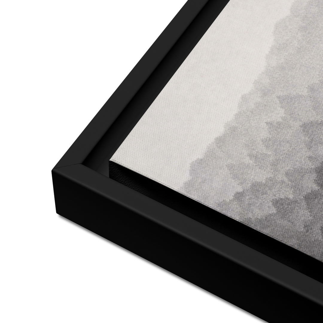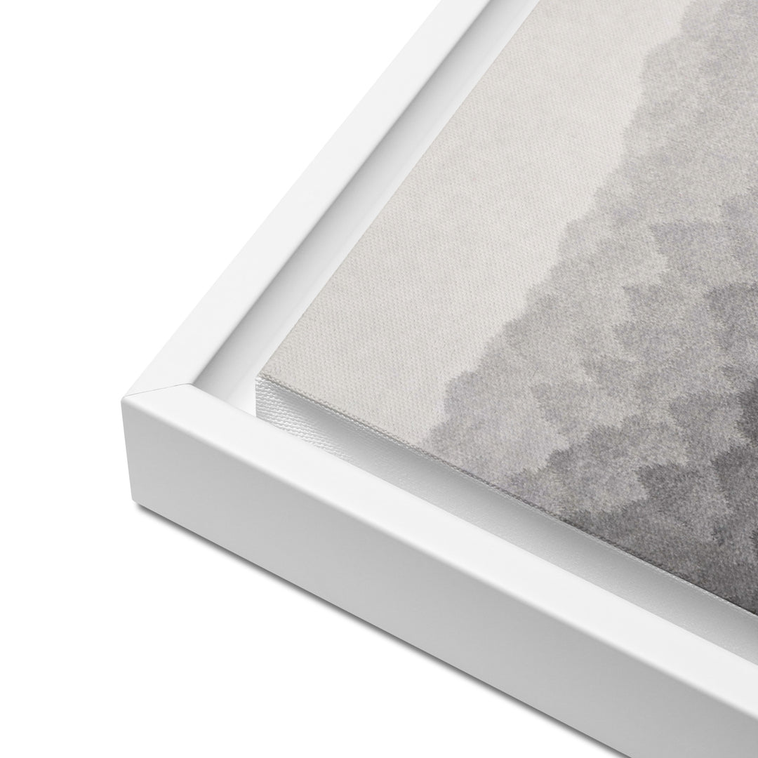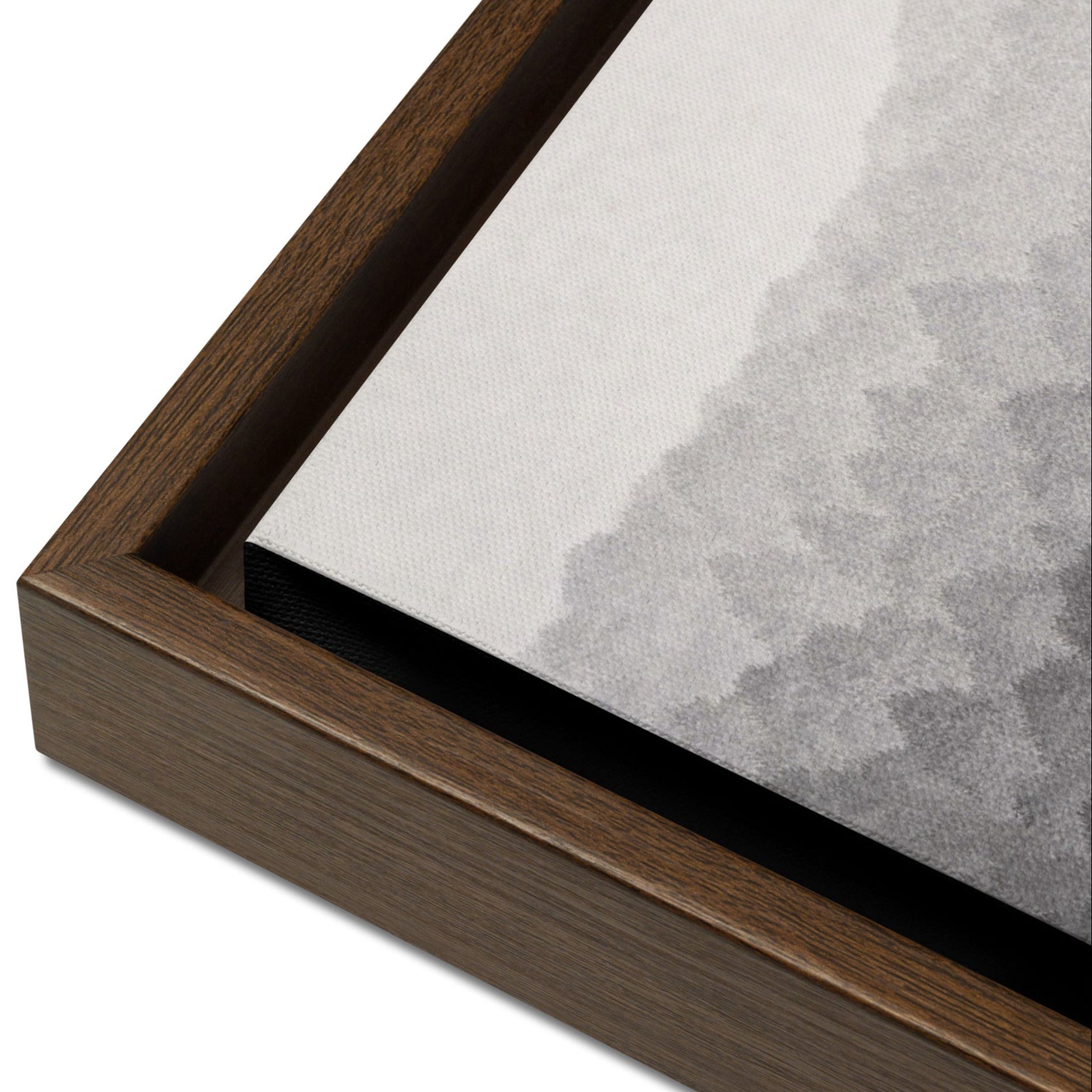 La tela incorniciata in legno di pino ha dei cuscinetti in gomma agli angoli, un supporto a parete preassemblato e una cornice sospesa per un'eleganza senza sforzo.