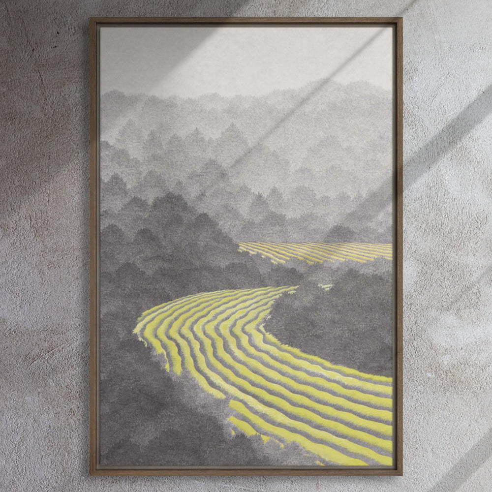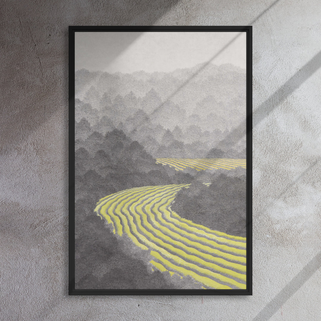 Tela - Han Jeong Lee, Campi 2  framed-canvas-_in_-brown-24x36-front-6879394a5911a