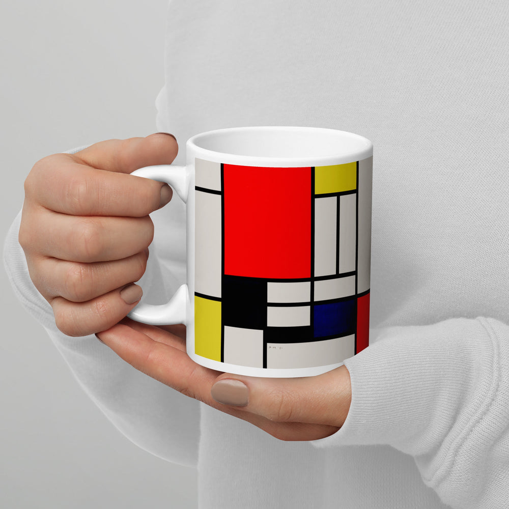 Tasse - Mondrian, Compositie met rood, geel, zwart, grijs en blauw