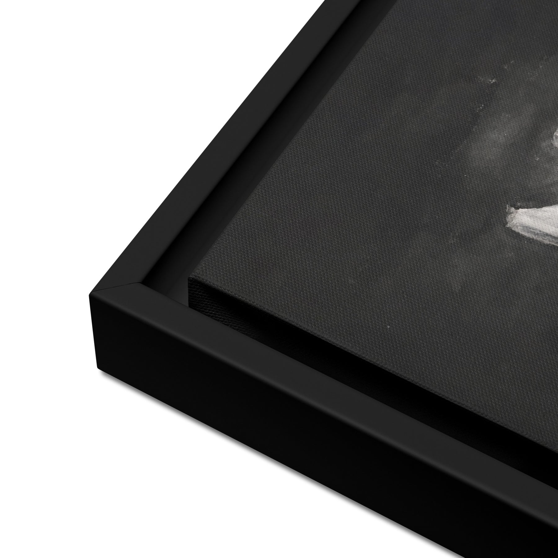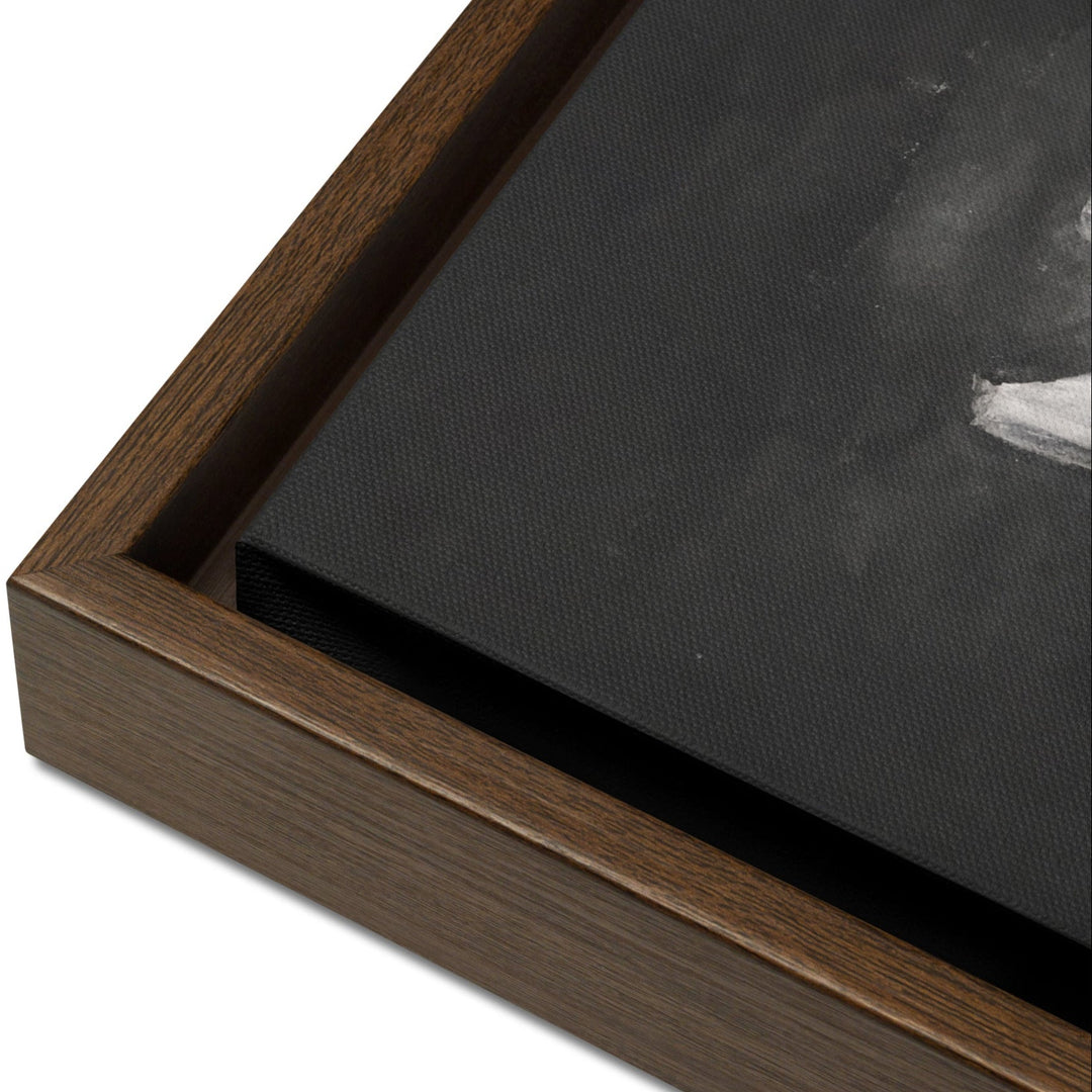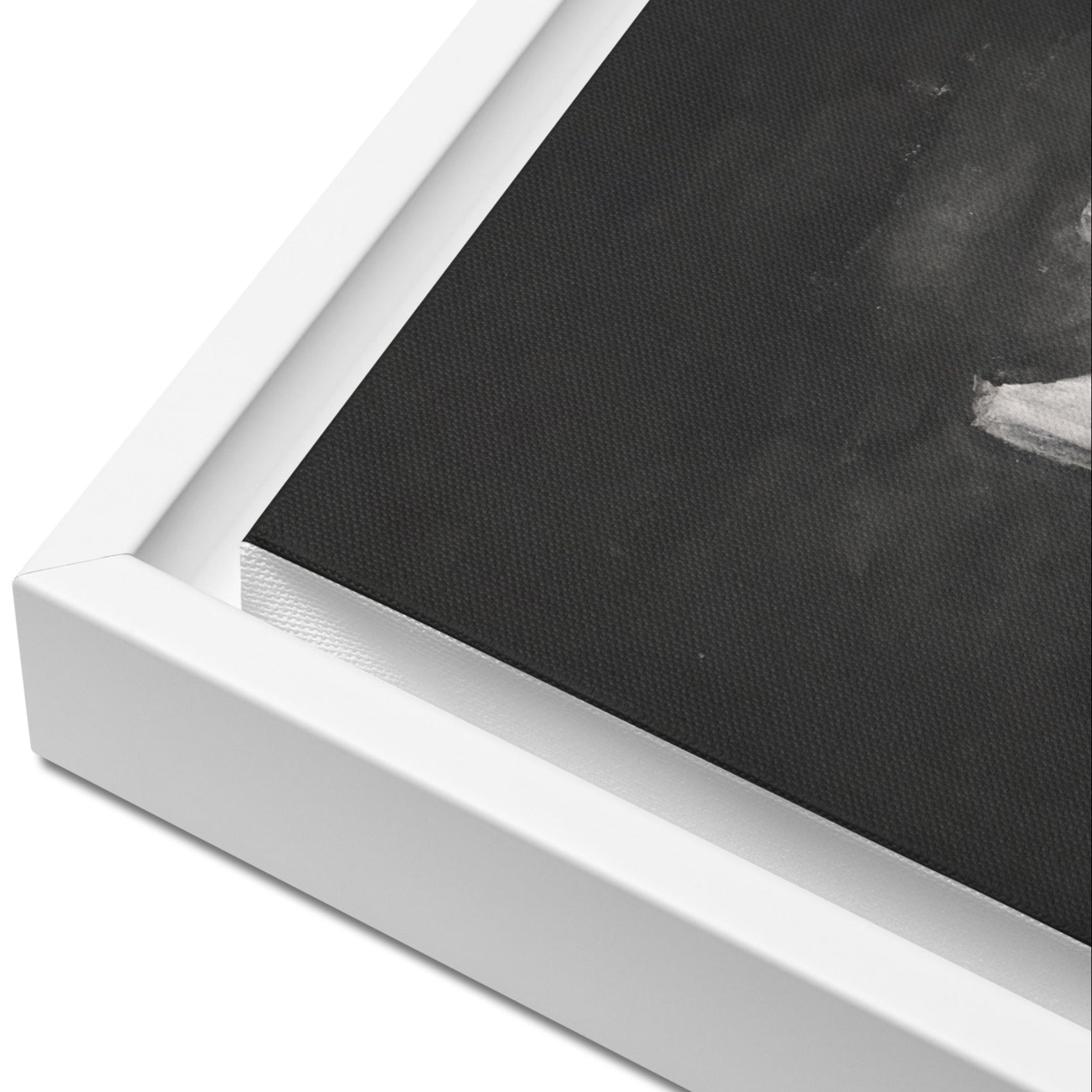 Die gerahmte Leinwand aus Kiefernholz hat Gummipolster an den Ecken, eine vormontierte Wandhalterung und einen schwebenden Rahmen für mühelose Eleganz.