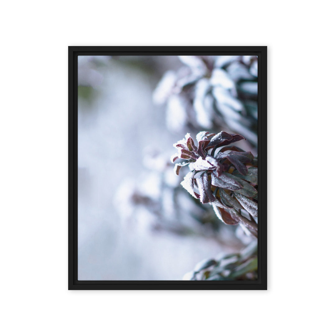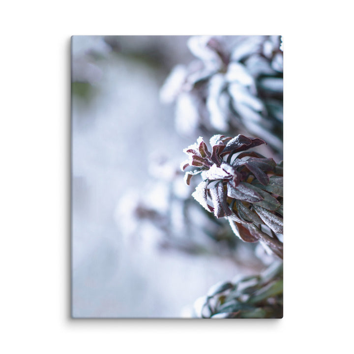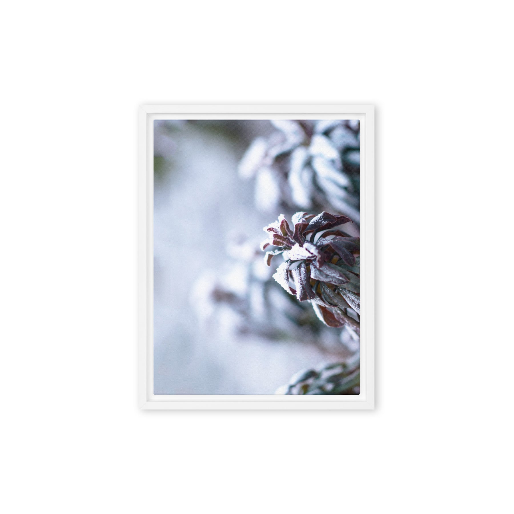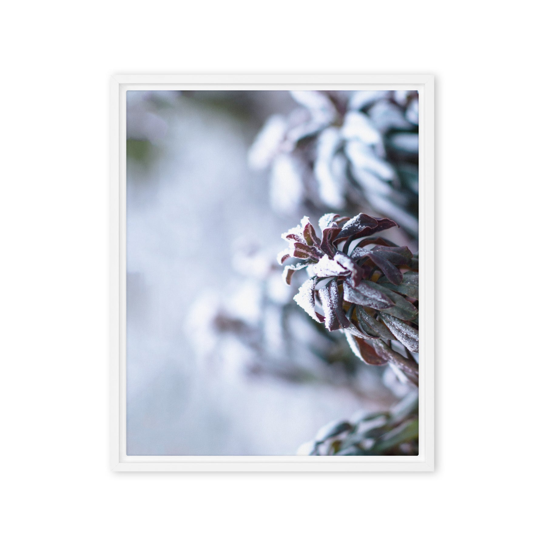 Gerahmte Leinwand - Frost on leaves, a moment in nature