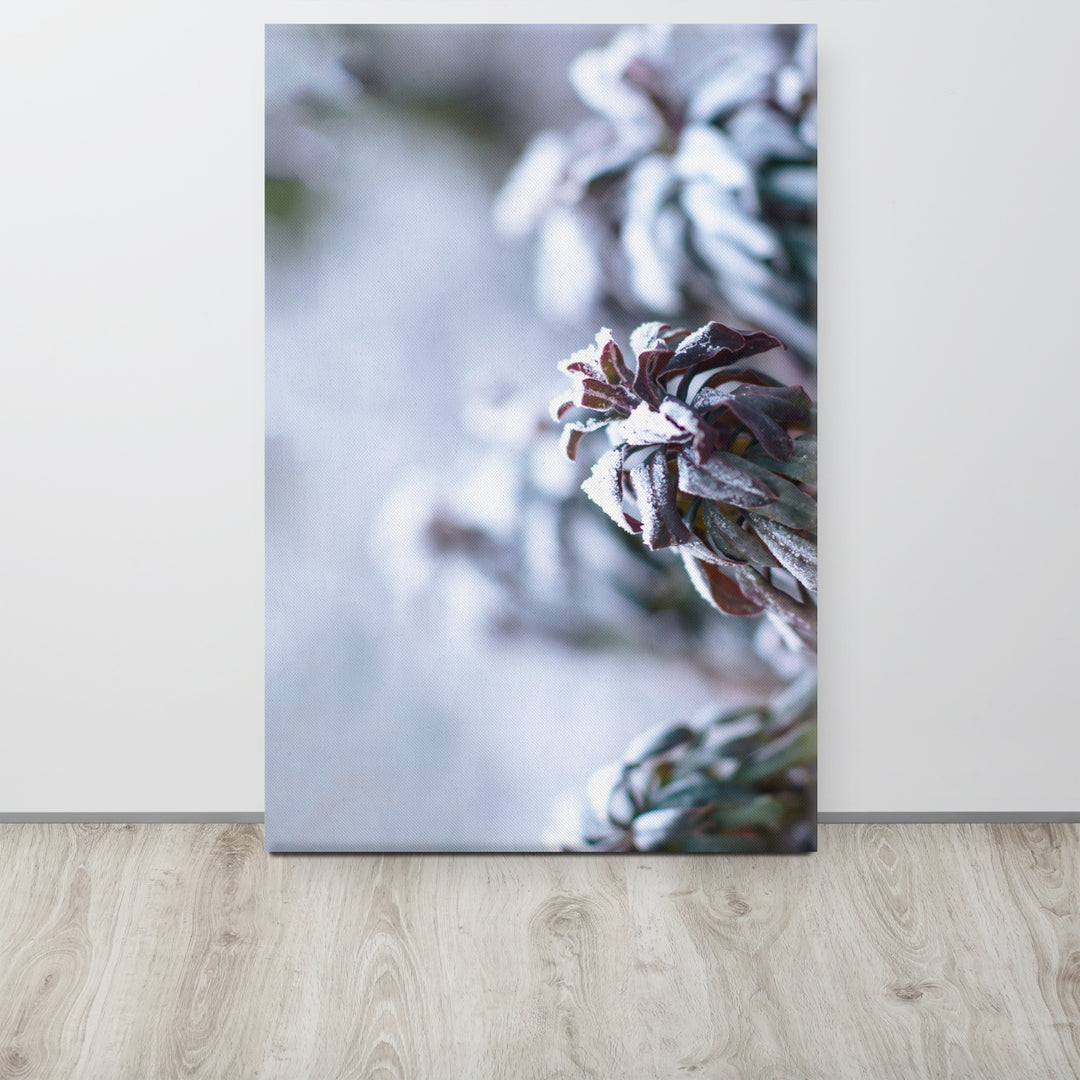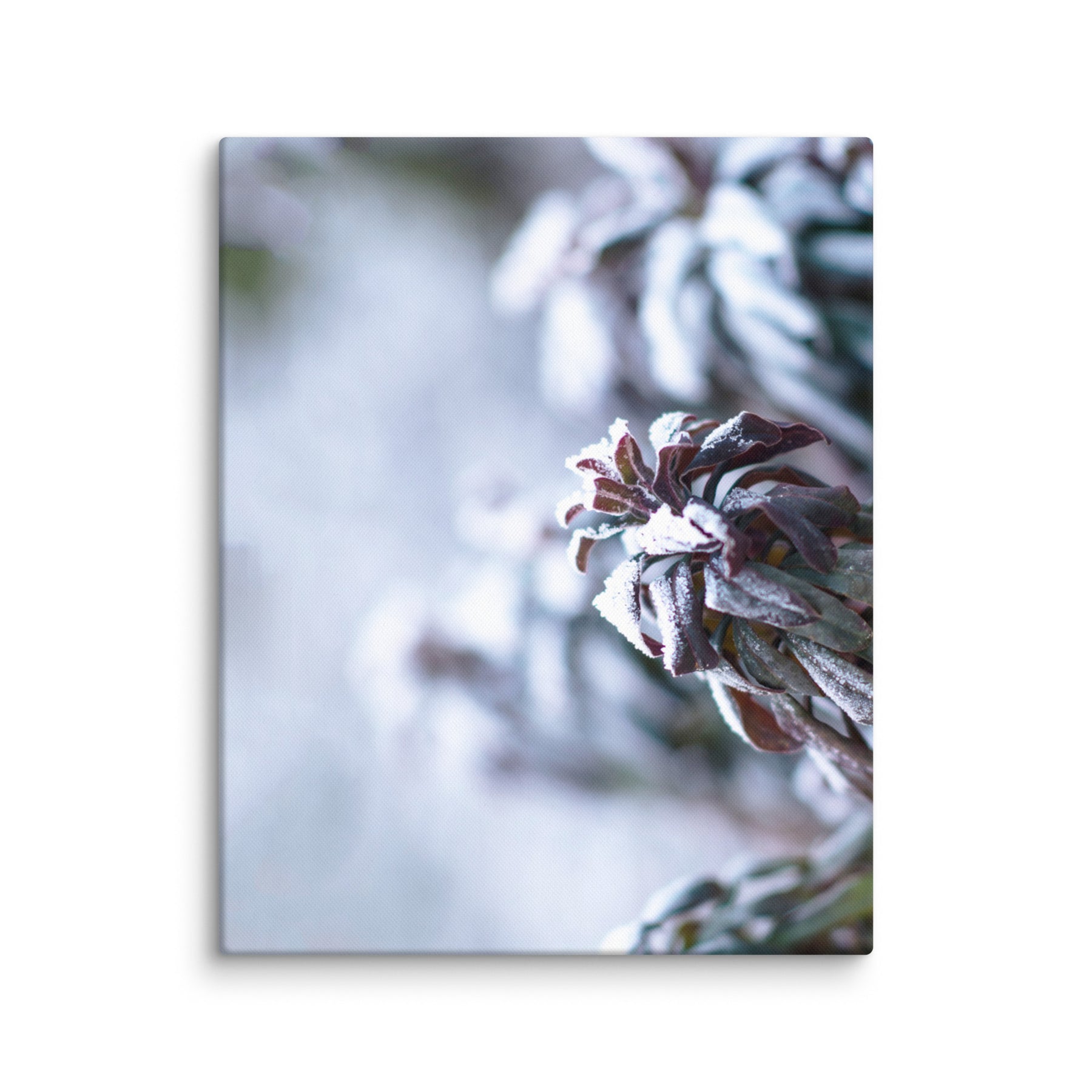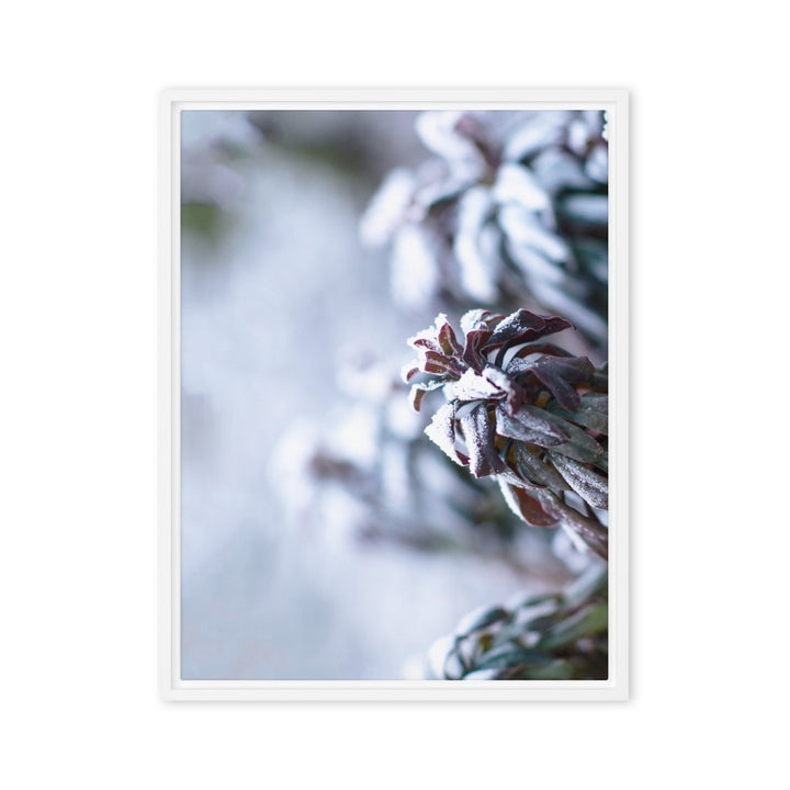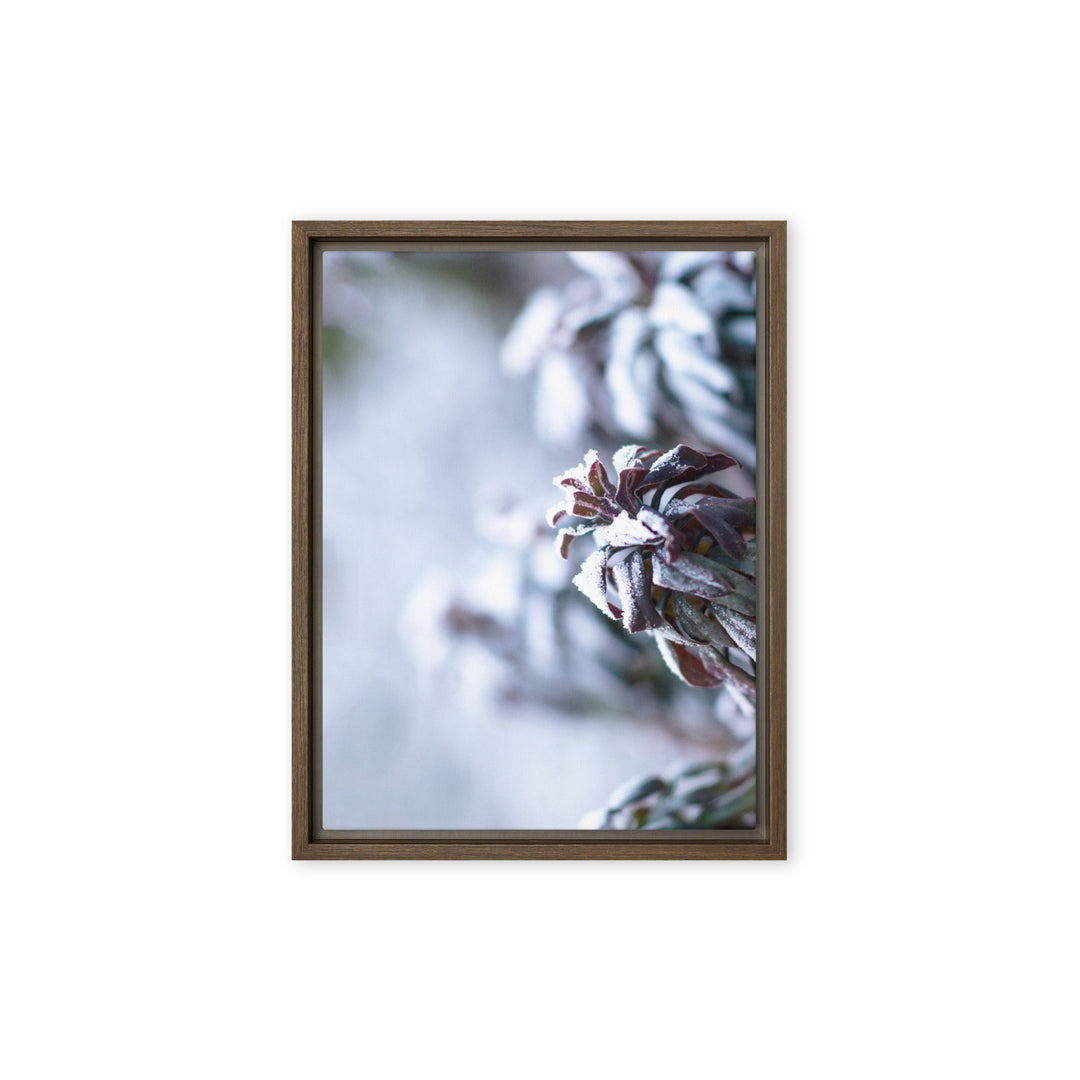 Gerahmte Leinwand - Frost on leaves, a moment in nature