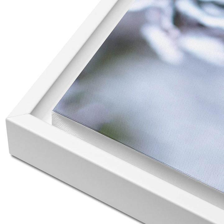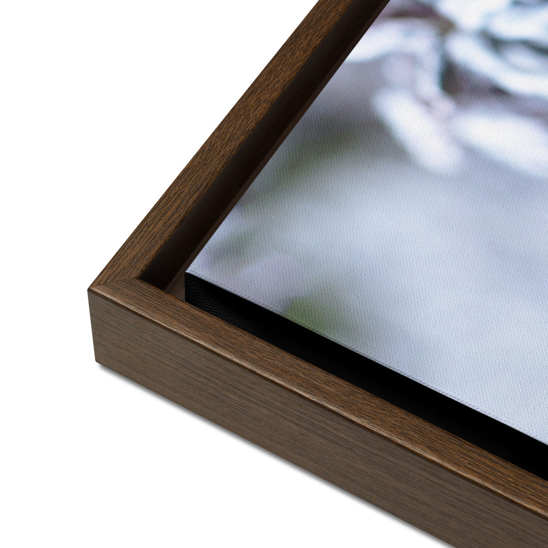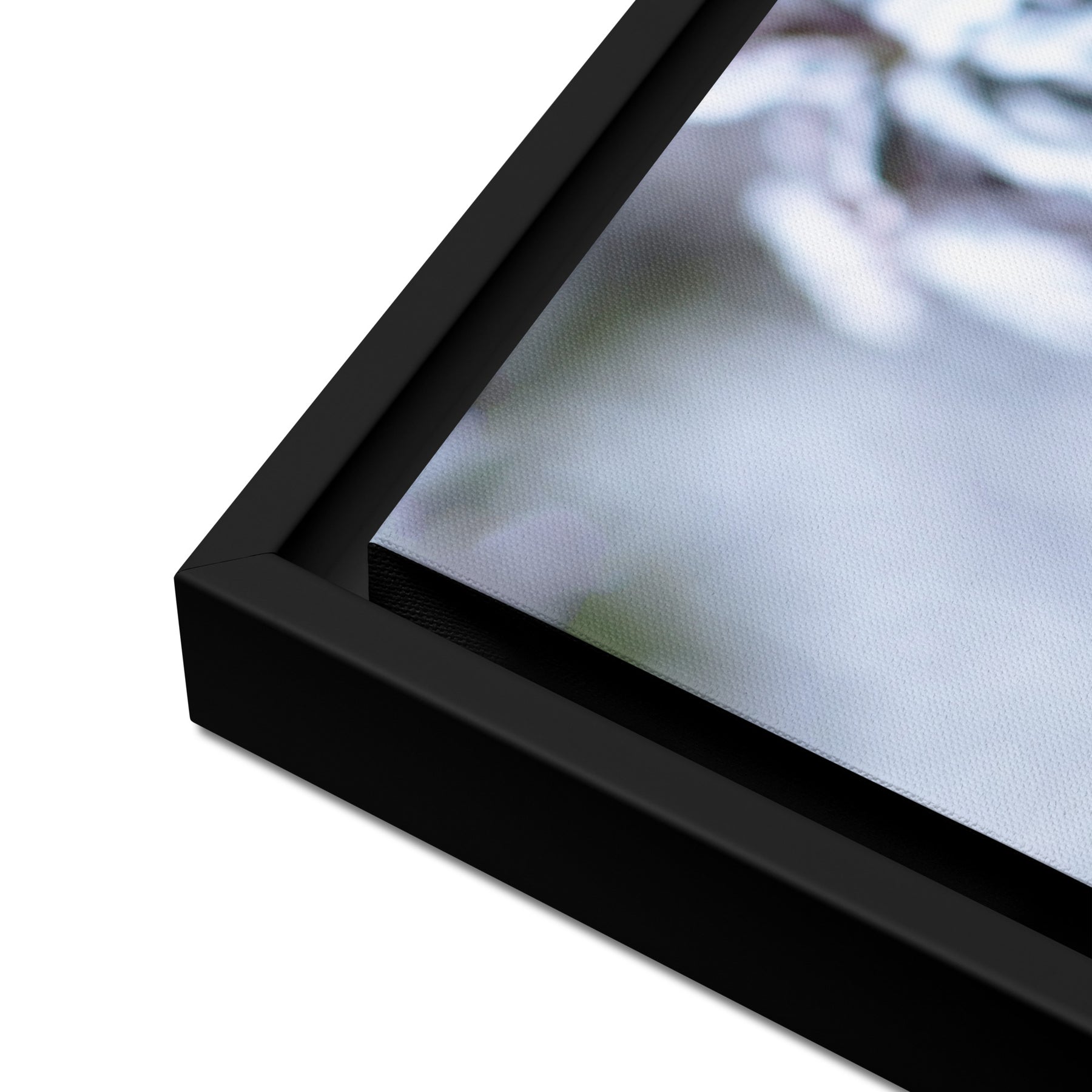 Die gerahmte Leinwand aus Kiefernholz hat Gummipolster an den Ecken, eine vormontierte Wandhalterung und einen schwebenden Rahmen für mühelose Eleganz.