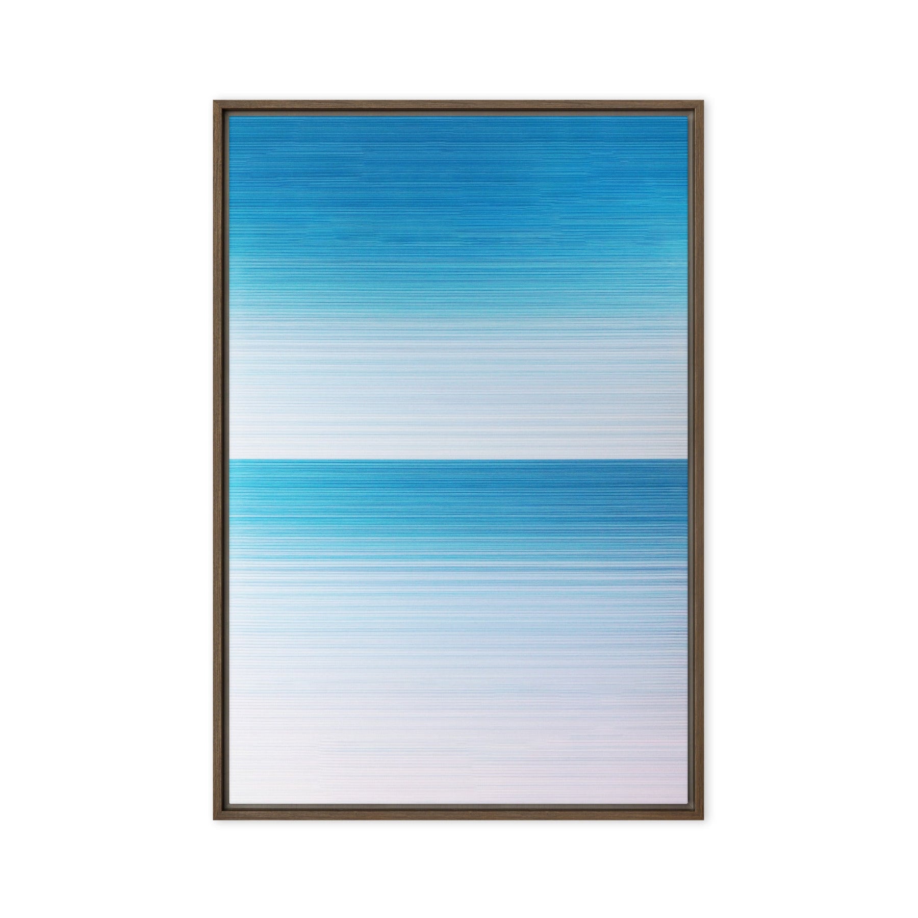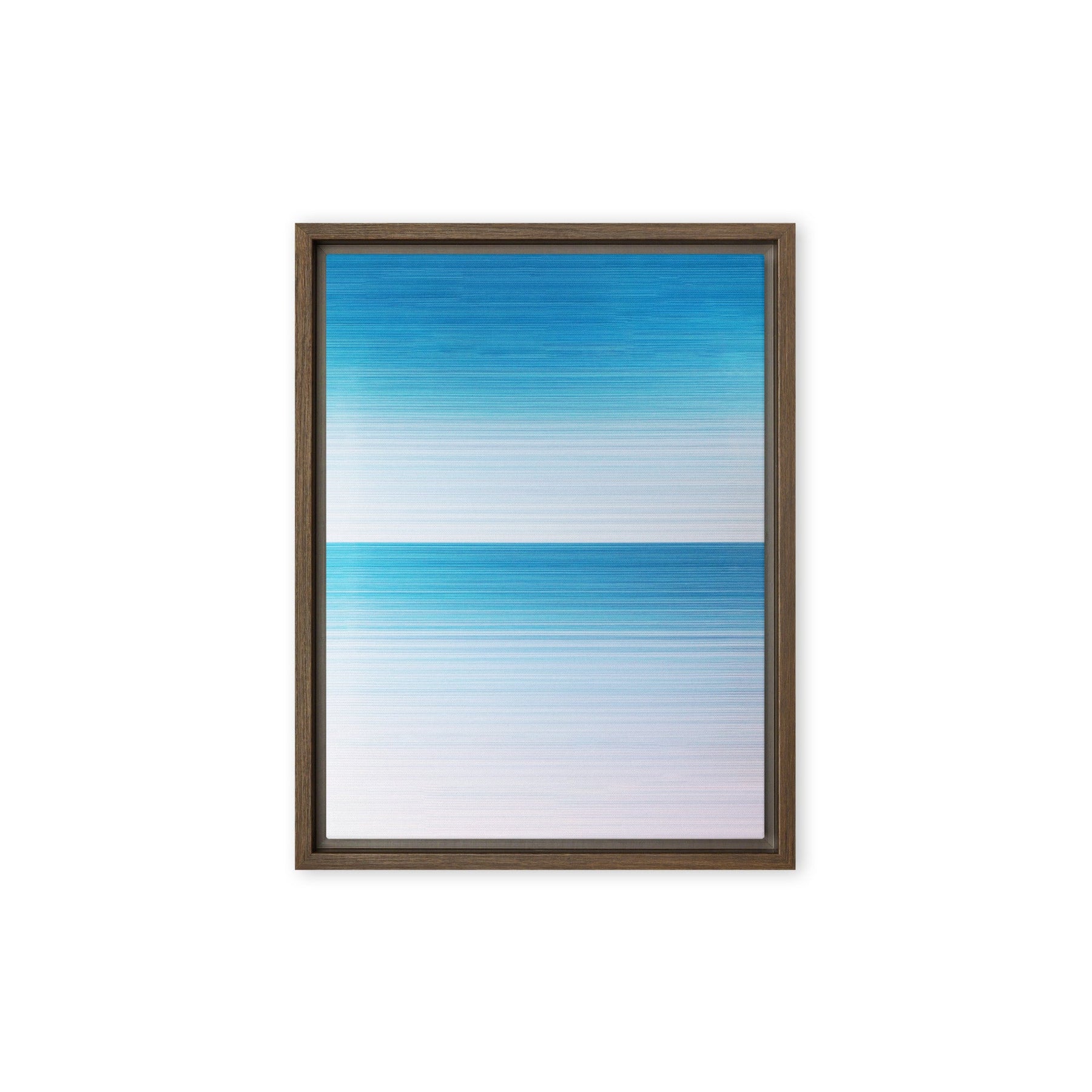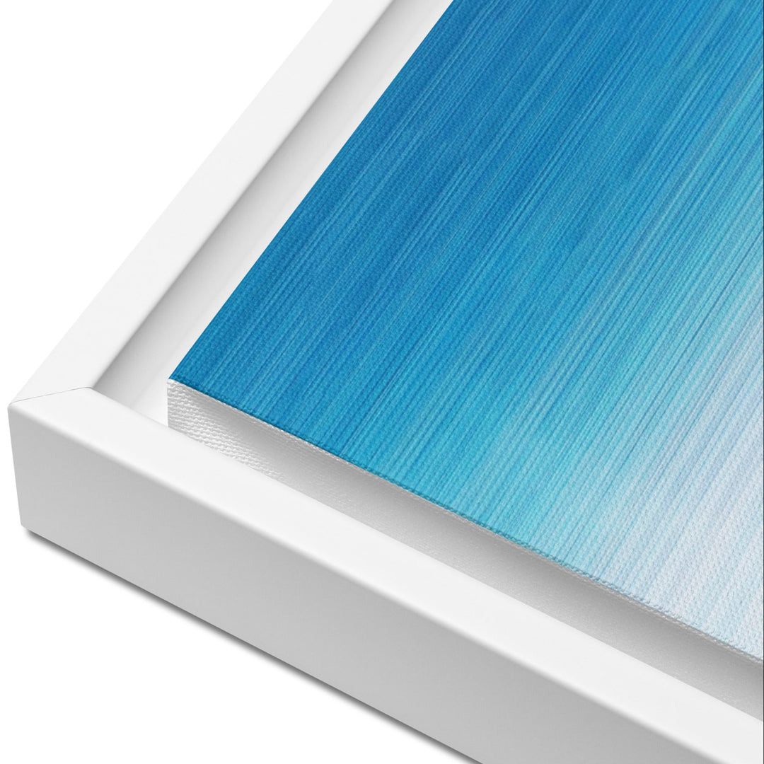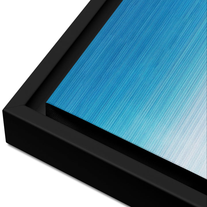 Die gerahmte Leinwand aus Kiefernholz hat Gummipolster an den Ecken, eine vormontierte Wandhalterung und einen schwebenden Rahmen für mühelose Eleganz.