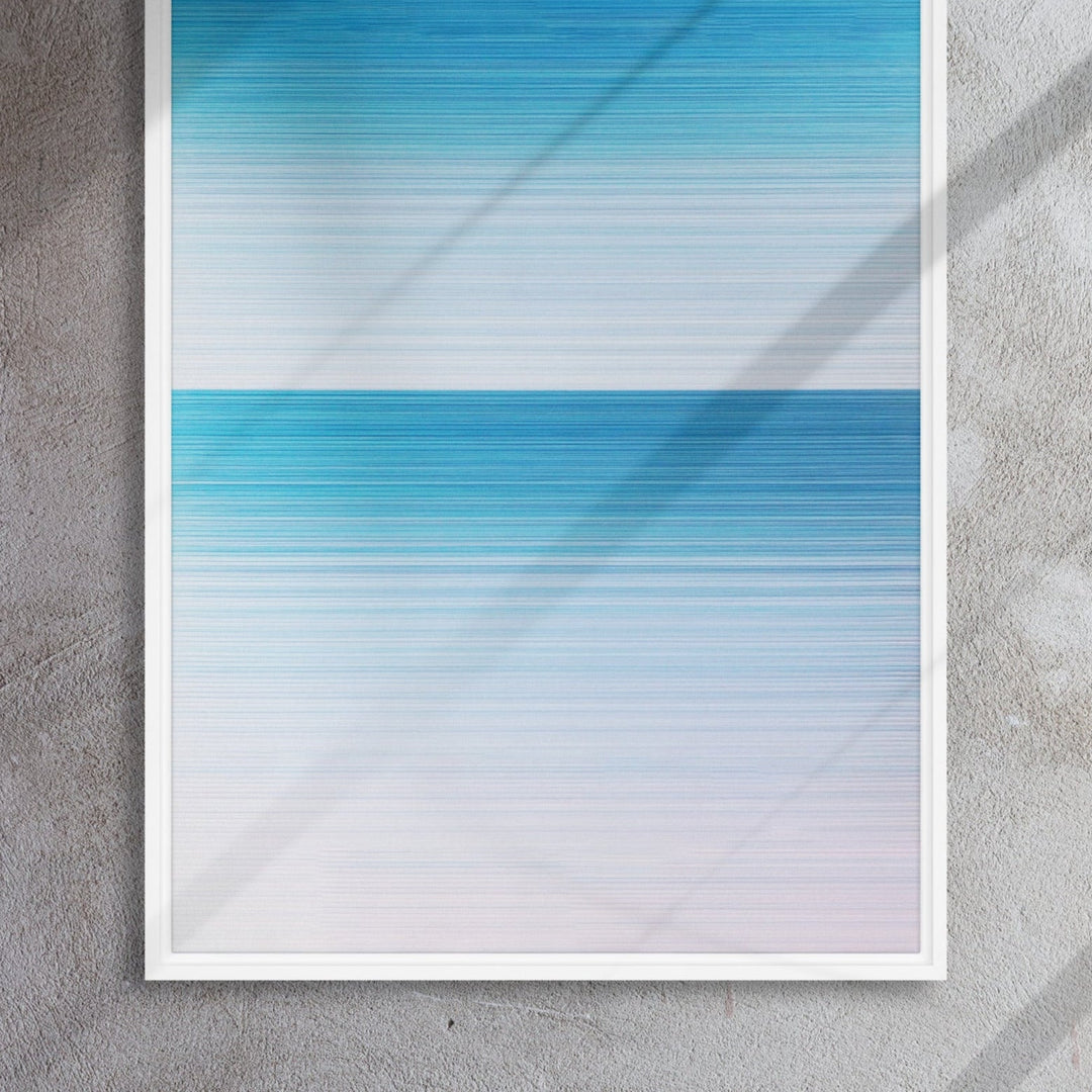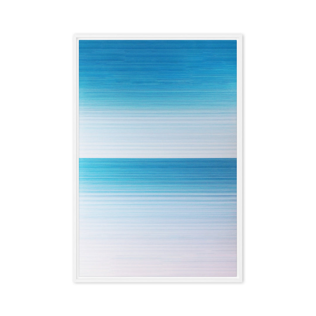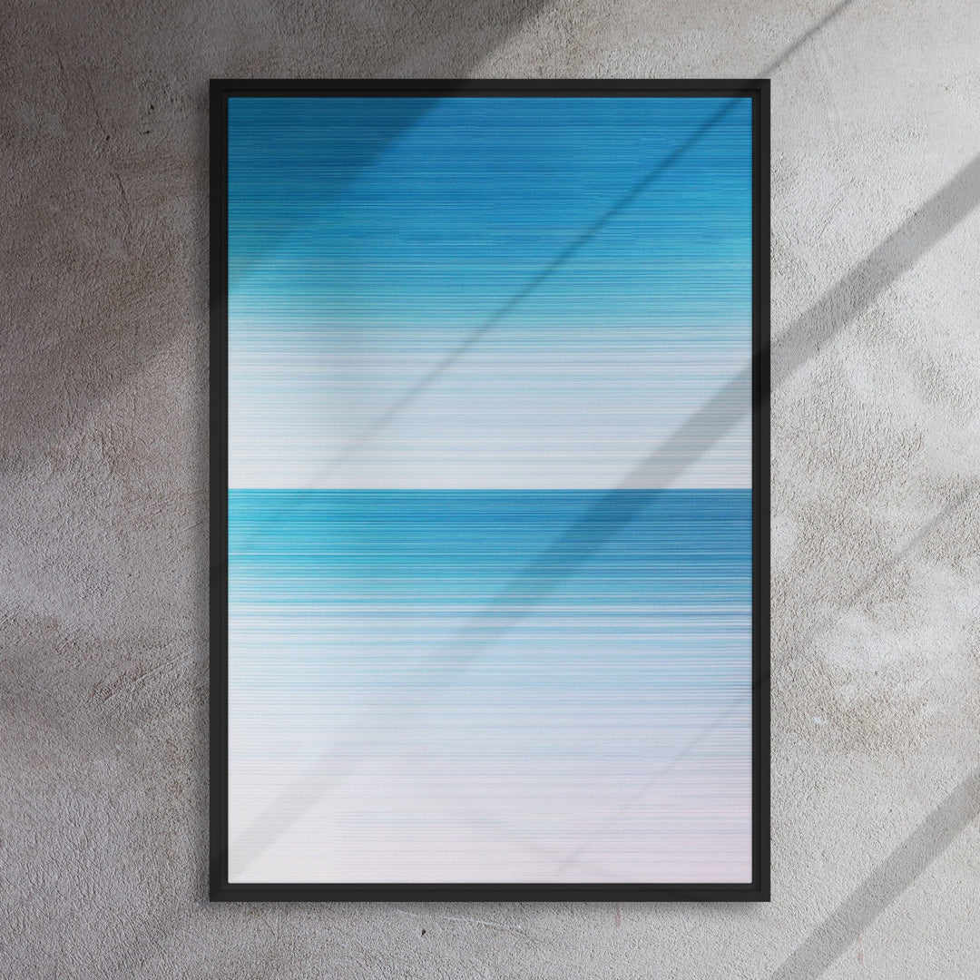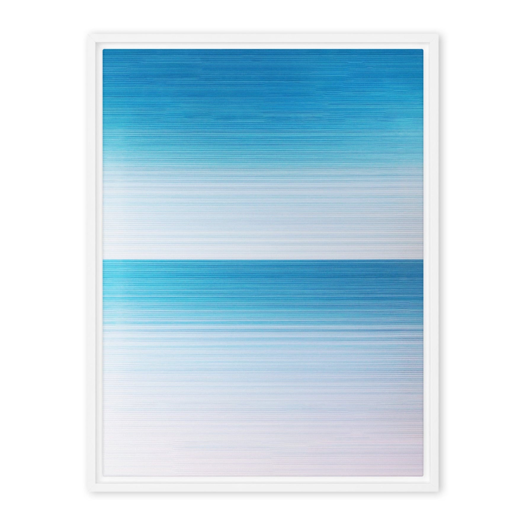 Die gerahmte Leinwand aus Kiefernholz hat Gummipolster an den Ecken, eine vormontierte Wandhalterung und einen schwebenden Rahmen für mühelose Eleganz.