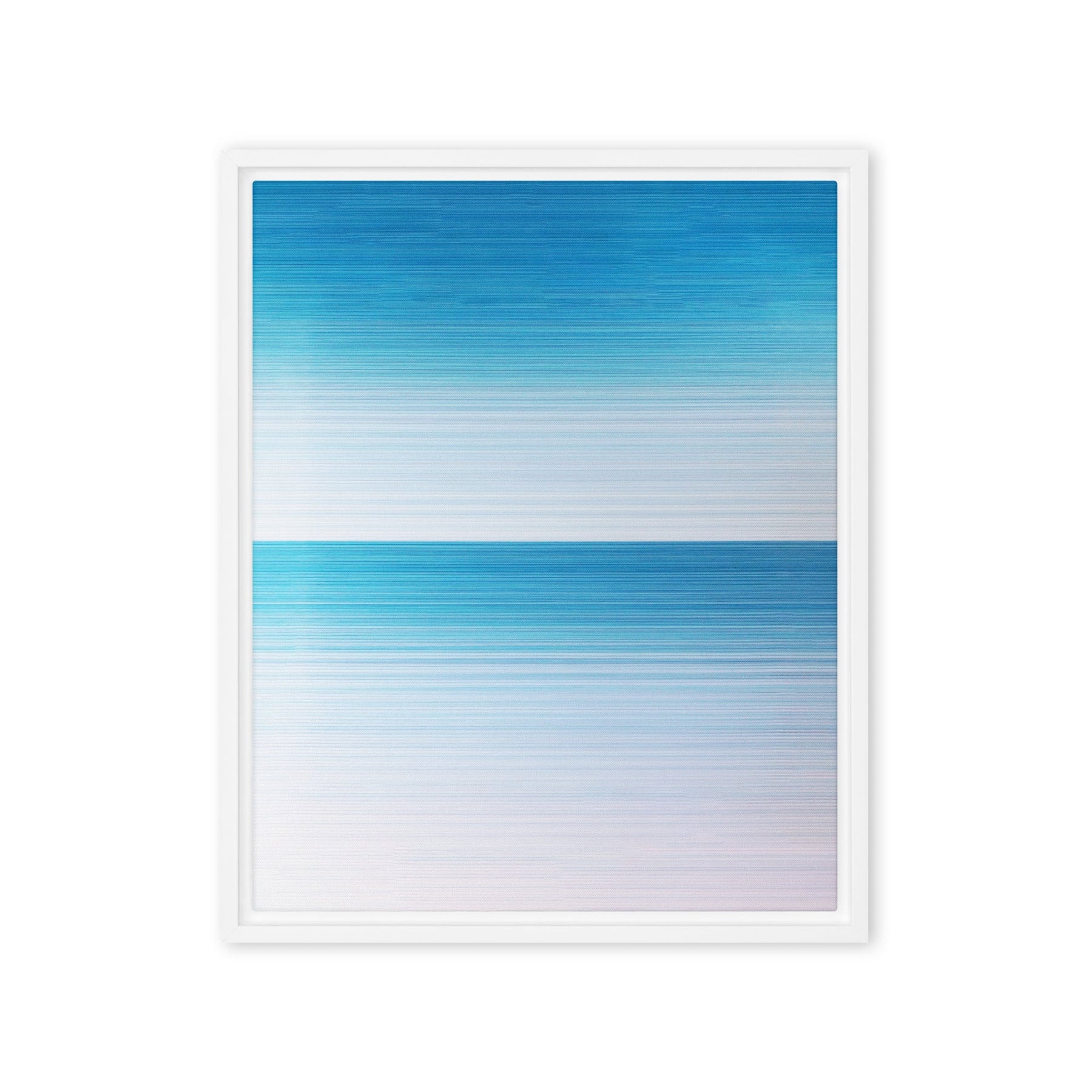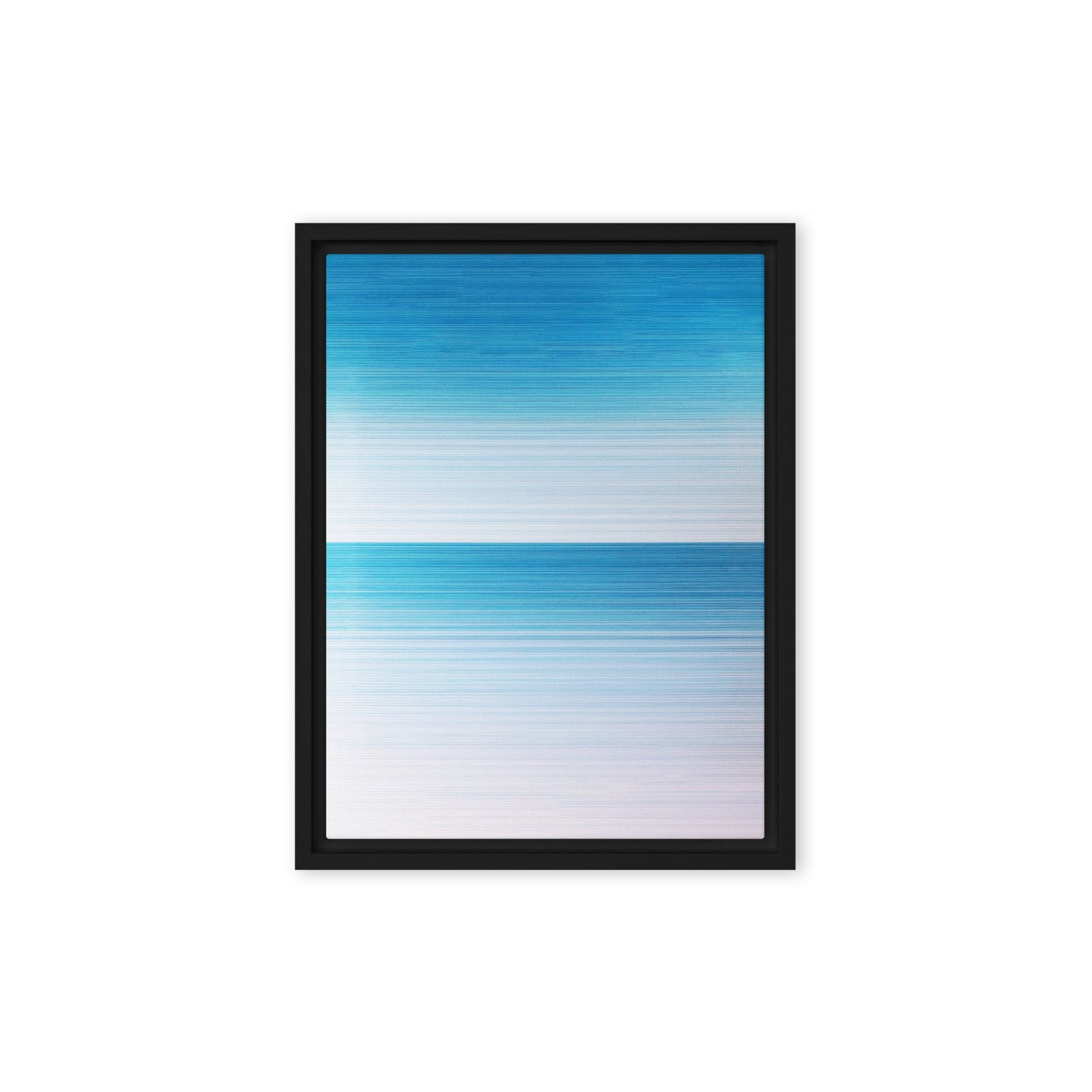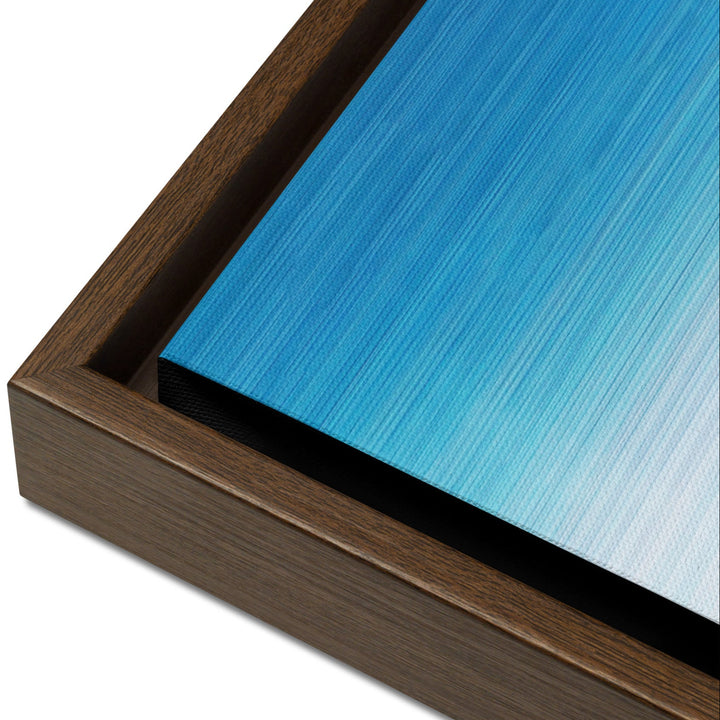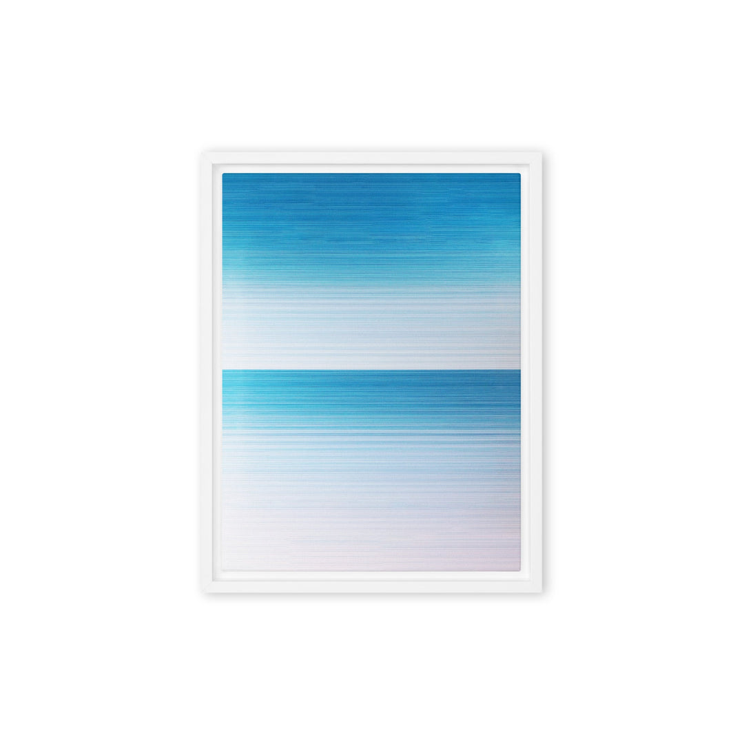 Die gerahmte Leinwand aus Kiefernholz hat Gummipolster an den Ecken, eine vormontierte Wandhalterung und einen schwebenden Rahmen für mühelose Eleganz.