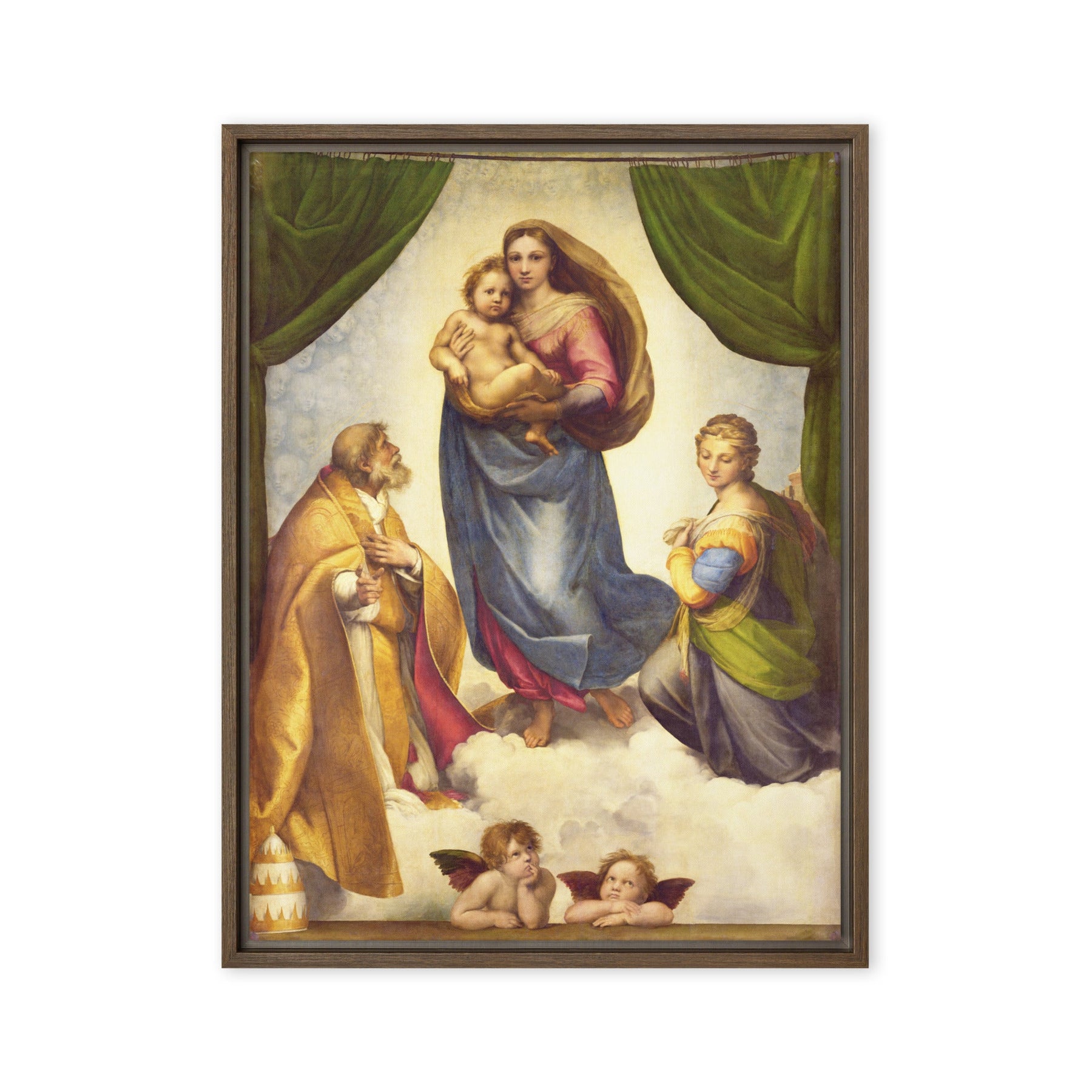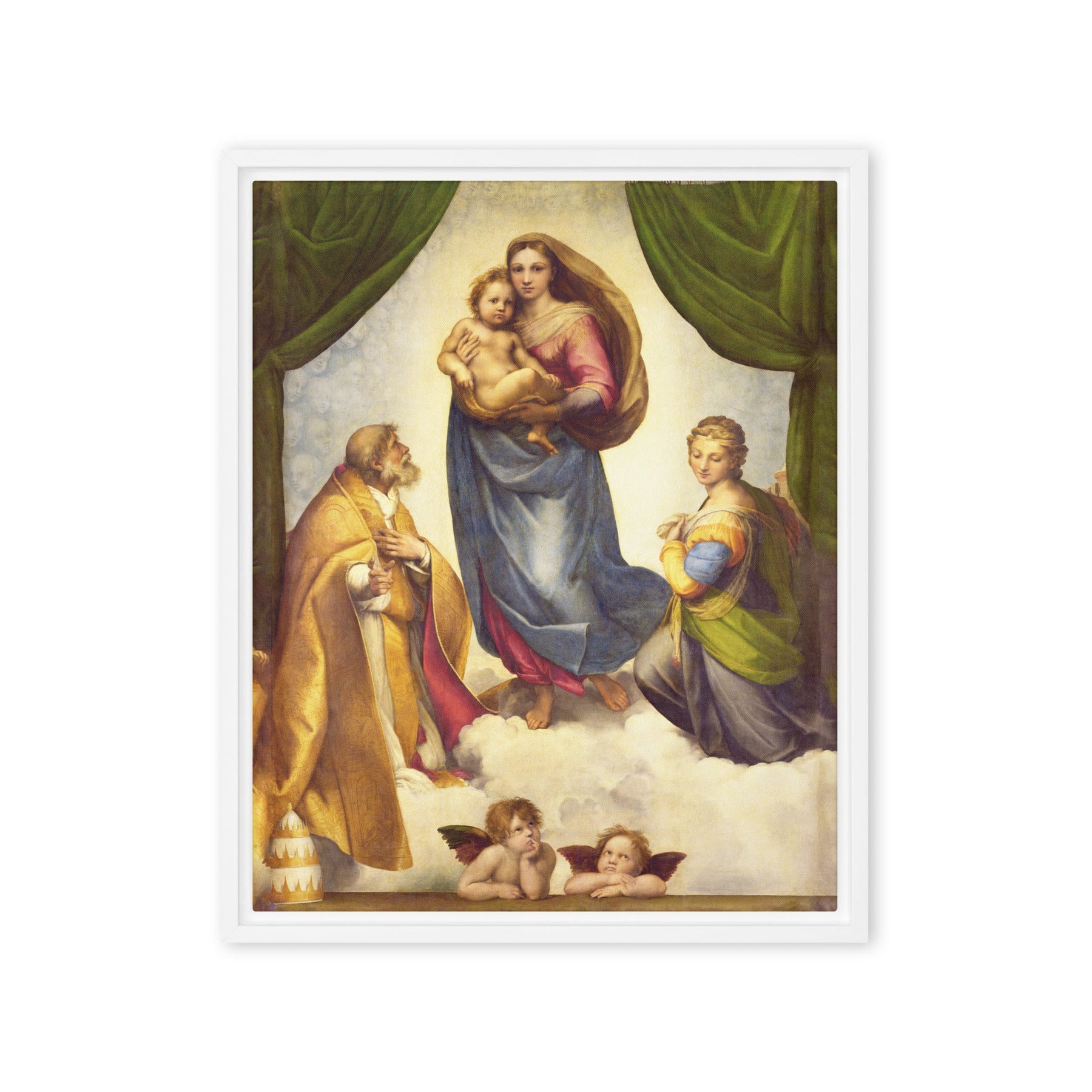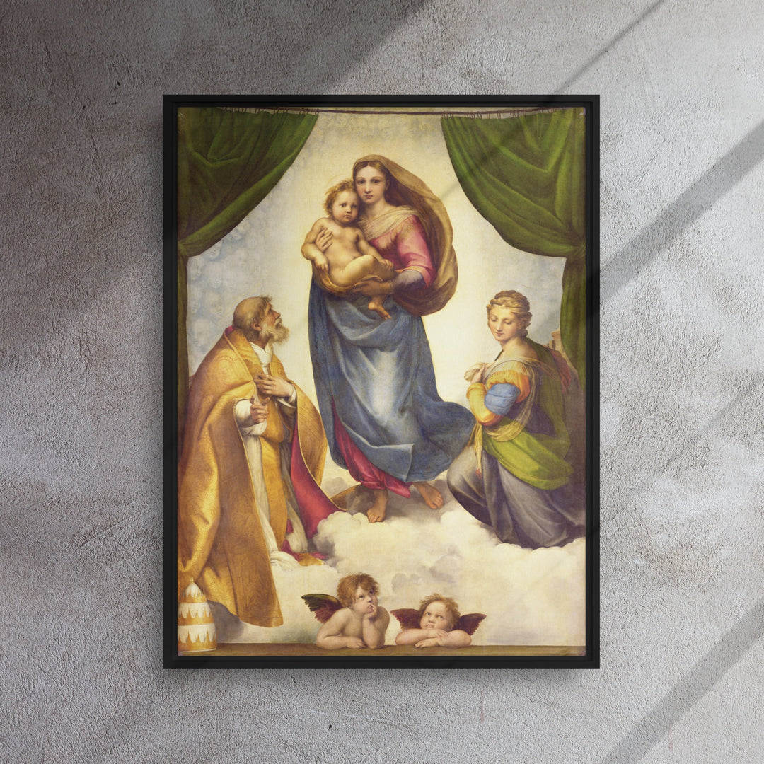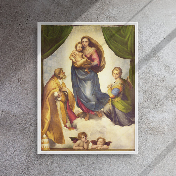 Gerahmte Leinwand - Raffaello Sanzio da Urbino, Die Sixtinische Madonna