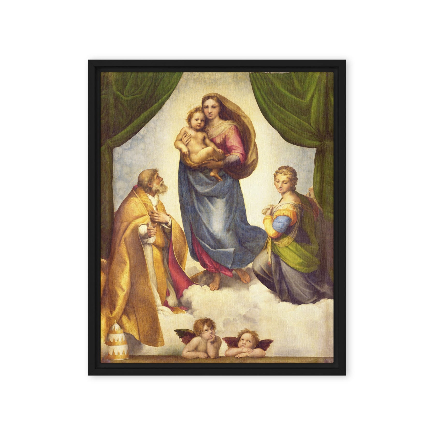 Leinwand - Raffaello Sanzio da Urbino, Die Sixtinische Madonna Schwarz / 61x81 cm (24″×32″) artlia