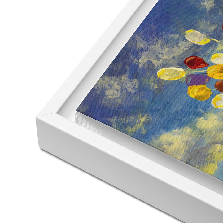Die gerahmte Leinwand aus Kiefernholz hat Gummipolster an den Ecken, eine vormontierte Wandhalterung und einen schwebenden Rahmen für mühelose Eleganz.