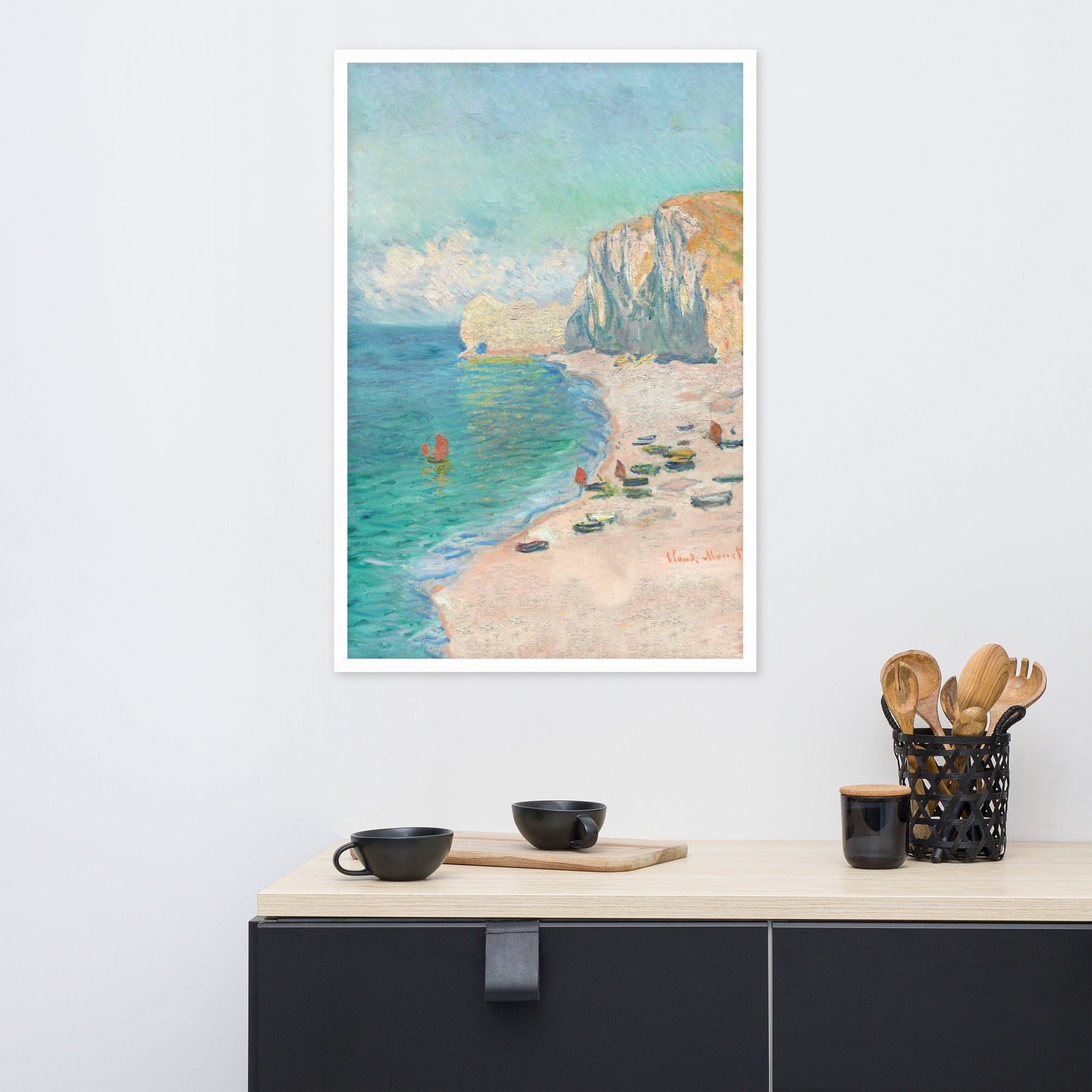 Mit diesem gerahmten Poster - Claude Monet, Étretat: The Beach and the Falaise d'Amont setzt du in jedem Raum ein markantes Zeichen. Gedruckt auf hochwertigem, dickem, mattem Papier.