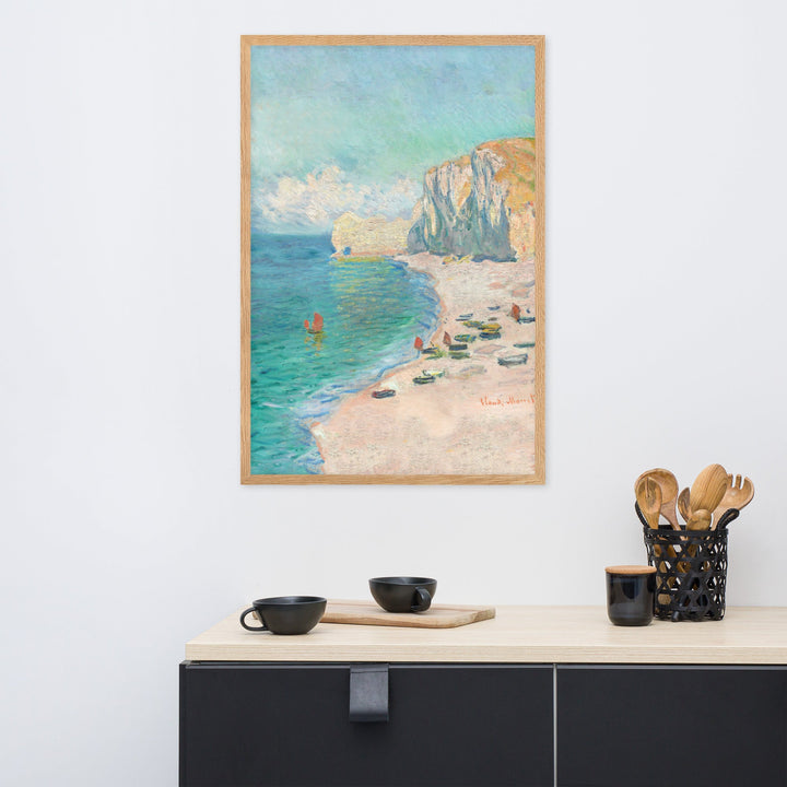 Poster - Claude Monet, Étretat: The Beach and the Falaise d'Amont Oak / 50×70 cm artlia