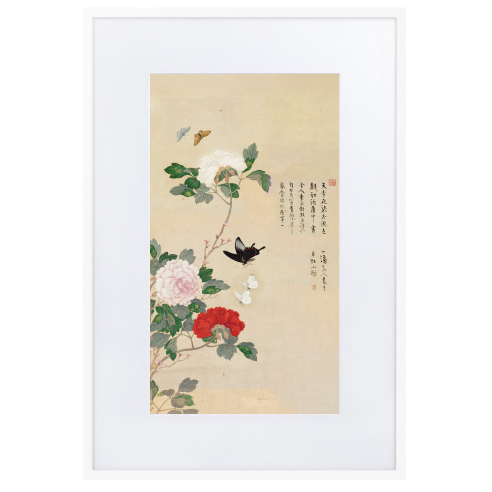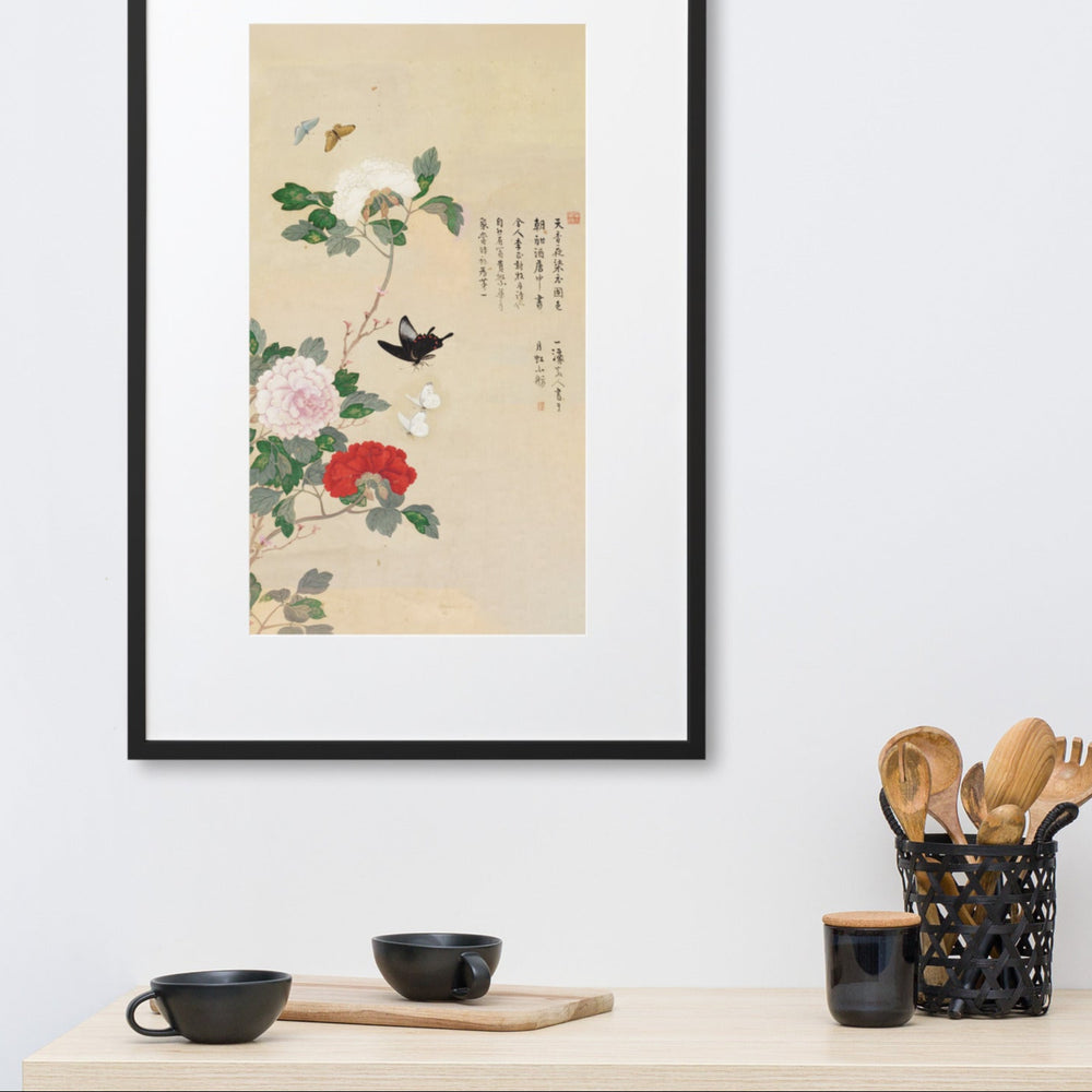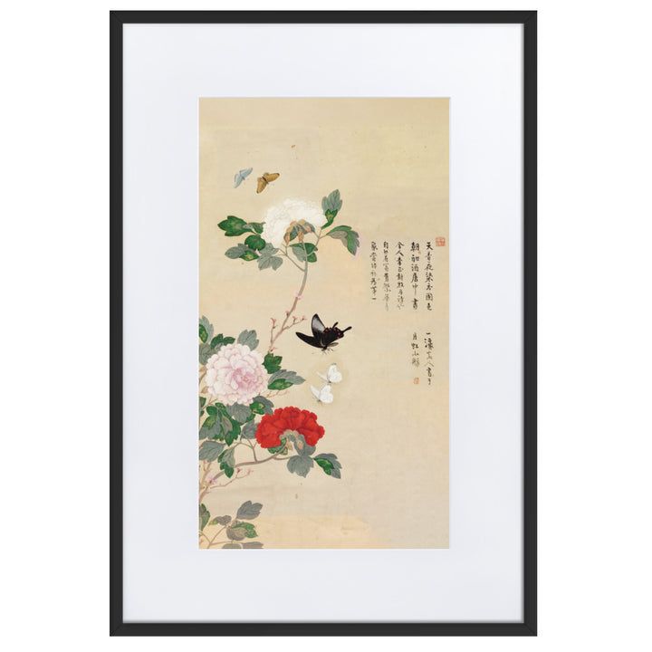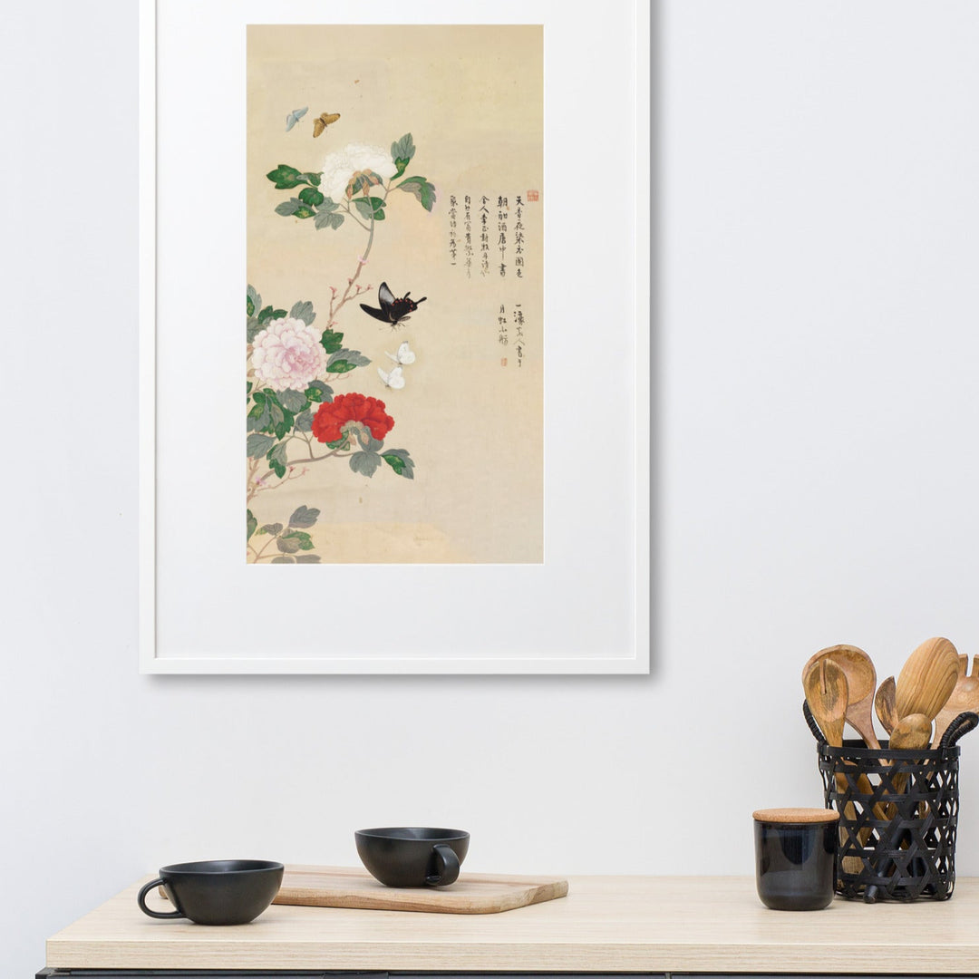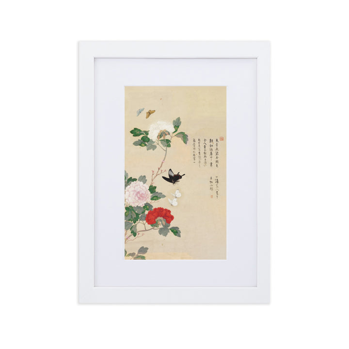Poster mit Passepartout - Blumen und Schmetterlinge