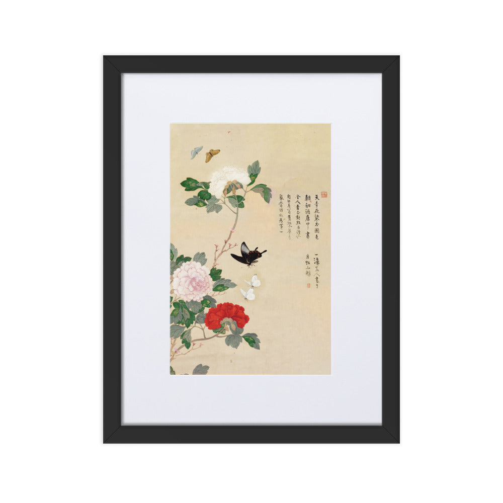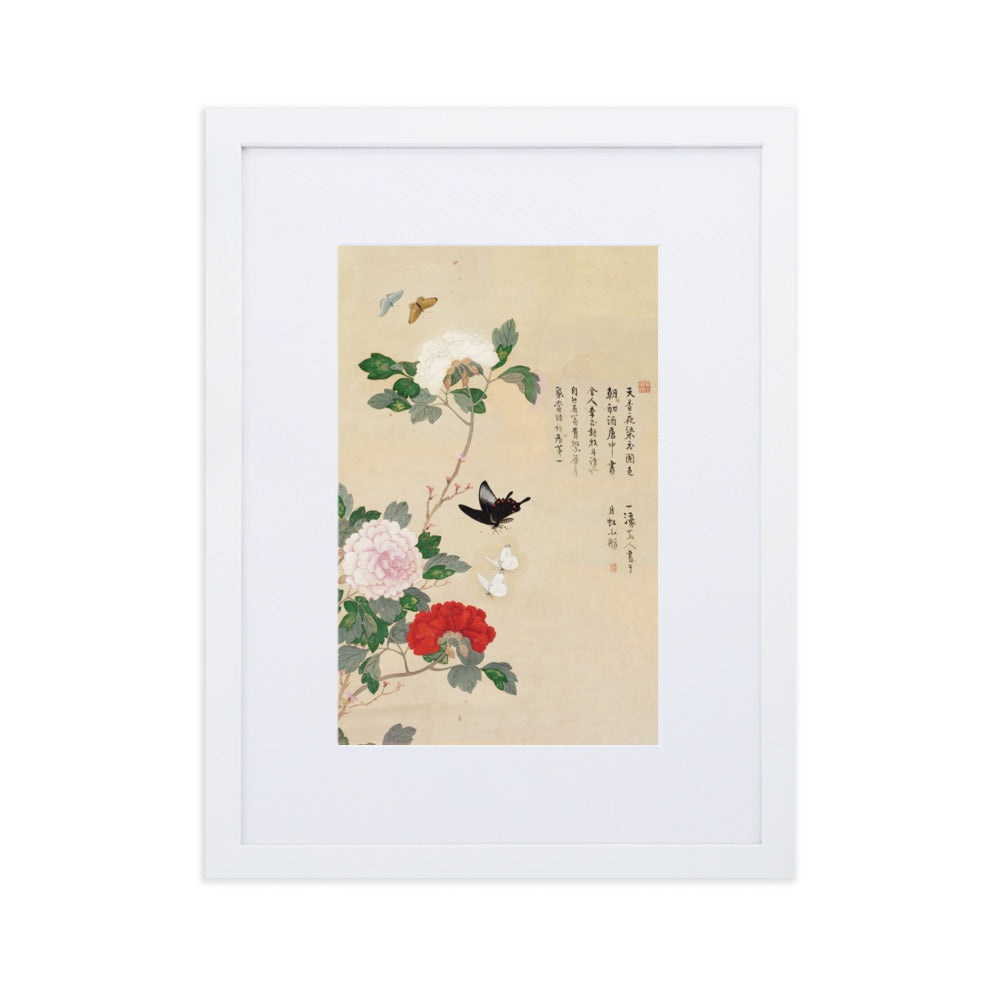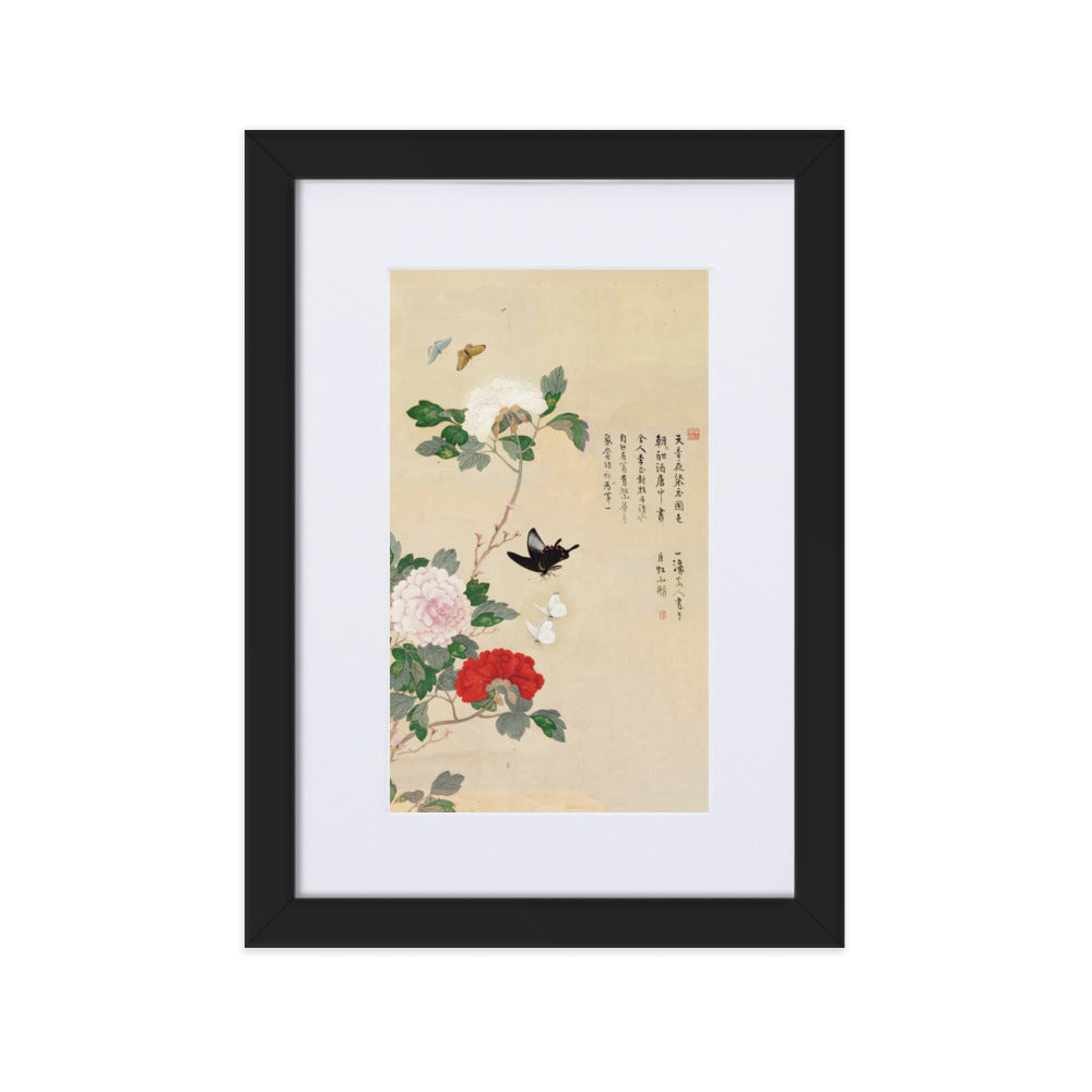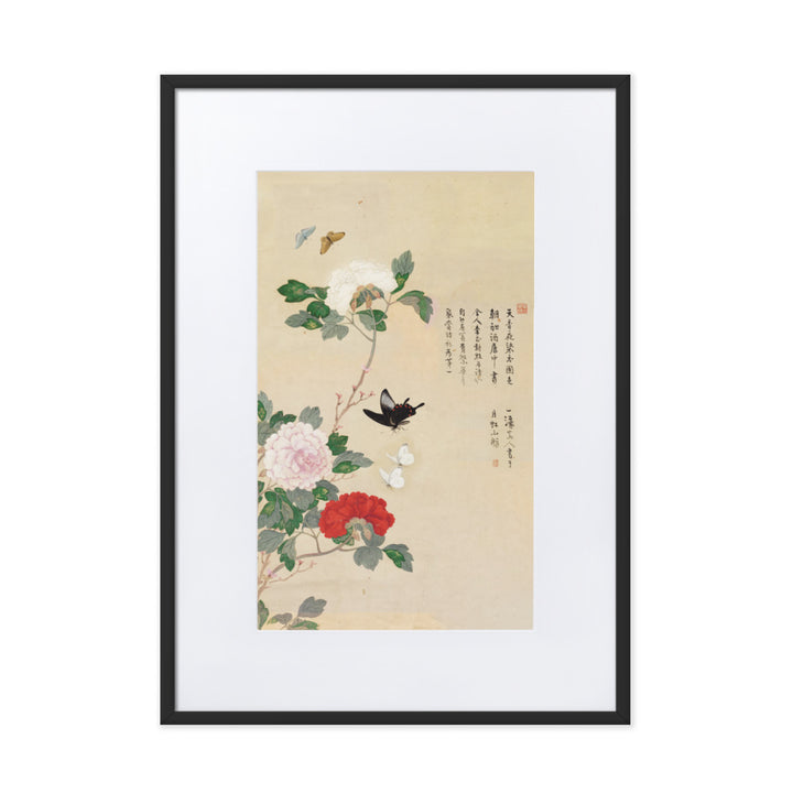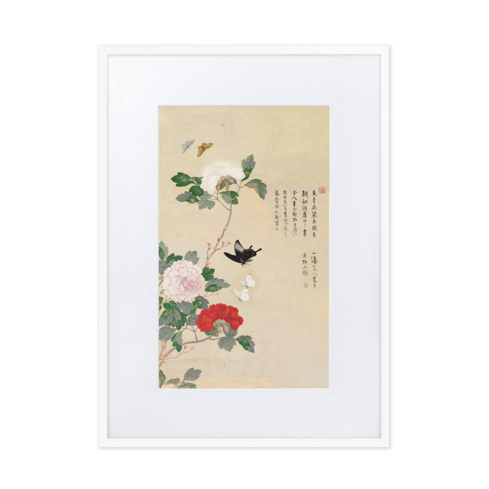 Poster mit Passepartout - Blumen und Schmetterlinge
