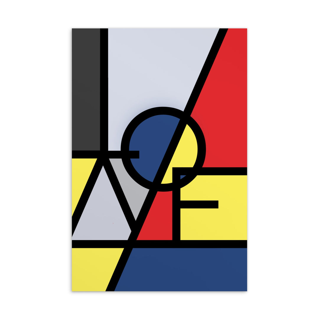 Diese Postkarte - "LOVE" im Stil von Mondrian wird aus dickem, hochwertigem mattem Papier hergestellt, sodass sie sich als optimales Geschenk oder für eine liebevolle Nachricht an einen Freund eignen.