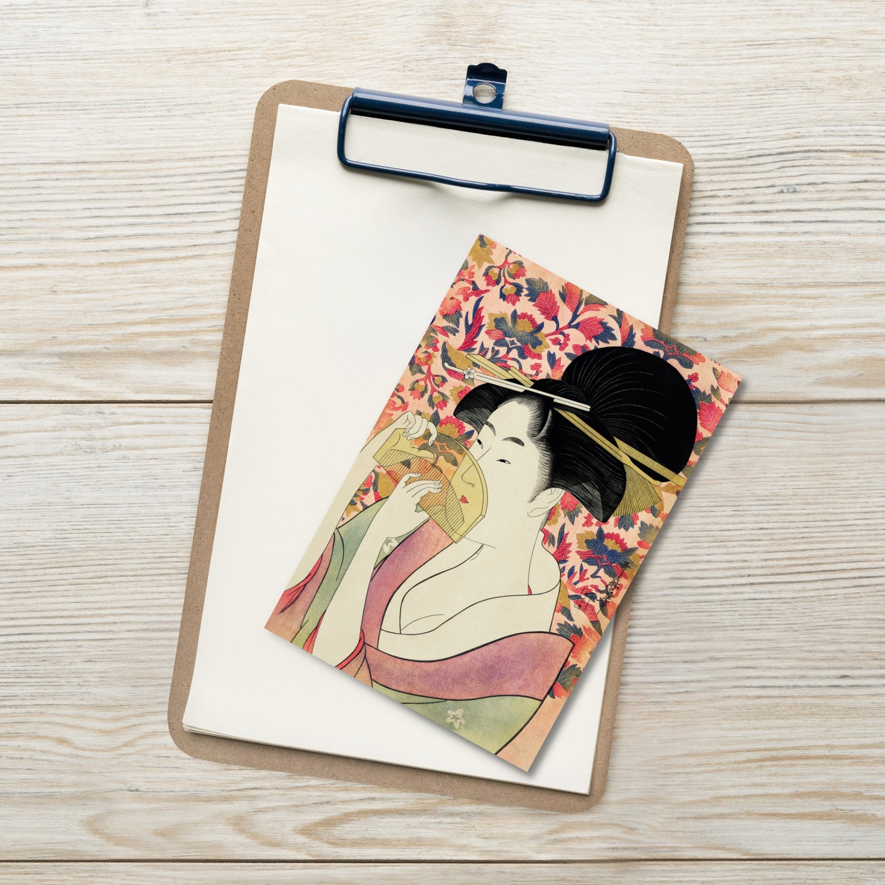 Diese Postkarte - Retro Geisha wird aus dickem, hochwertigem mattem Papier hergestellt, sodass sie sich als optimales Geschenk oder für eine liebevolle Nachricht an einen Freund eignen.