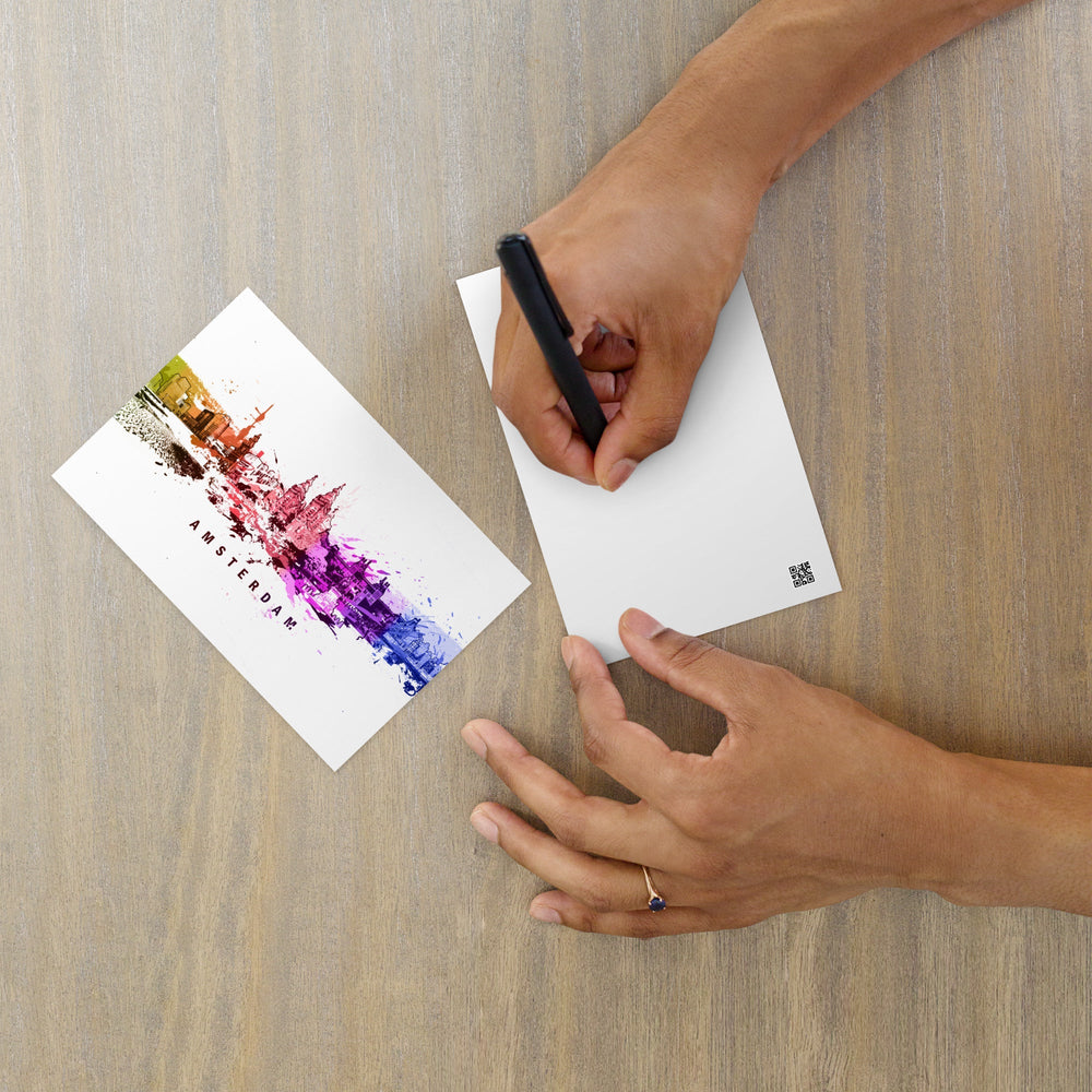 Diese Postkarte - Skyline Amsterdam wird aus dickem, hochwertigem mattem Papier hergestellt, sodass sie sich als optimales Geschenk oder für eine liebevolle Nachricht an einen Freund eignen.