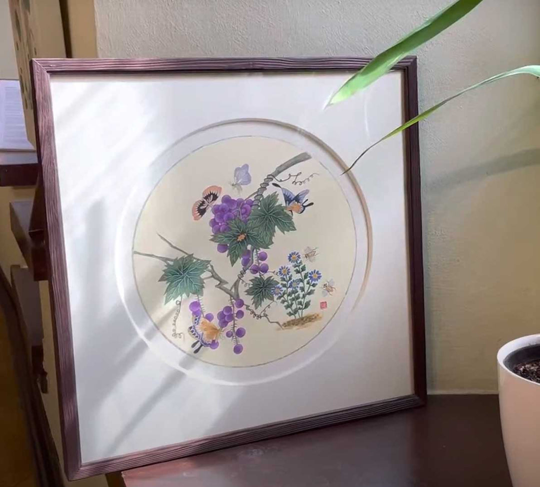 Das Kunstwerk „Schmetterlinge auf Traubenbaum“ von Misun Kim strahlt mit seiner lebhaften Szenerie und dem unverkennbar asiatischen Stil etwas ganz besonderes aus. Die runde Form findet man nicht überall und zieht die Aufmerksamkeit der Betrachter auf sich. Wir empfehlen dieses Werk im Büro aufzuhängen, oder auch in einem Wartezimmer.